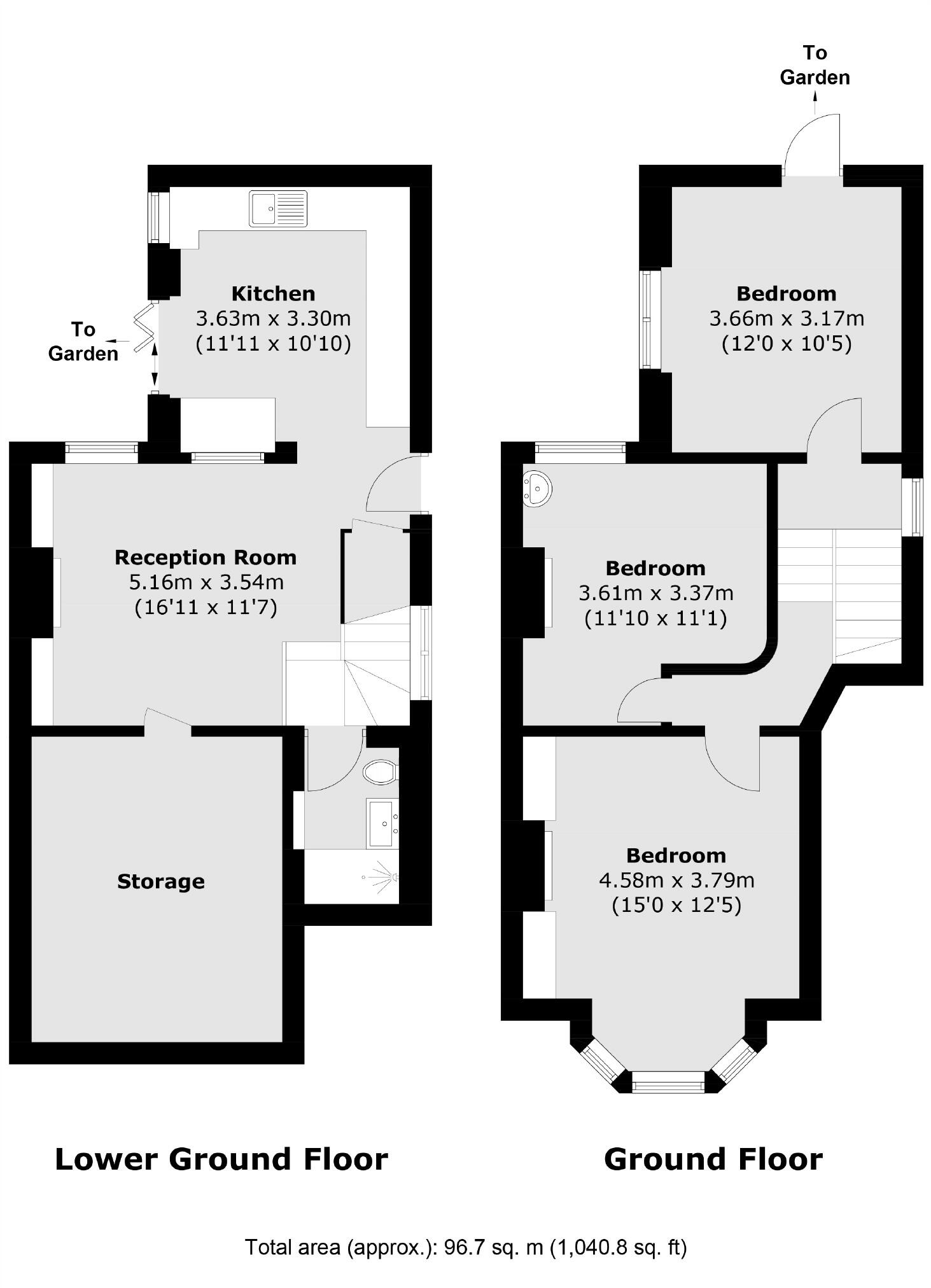 A spacious three double bedroom split level maisonette, with access to a well maintained private garden located on East Hill.