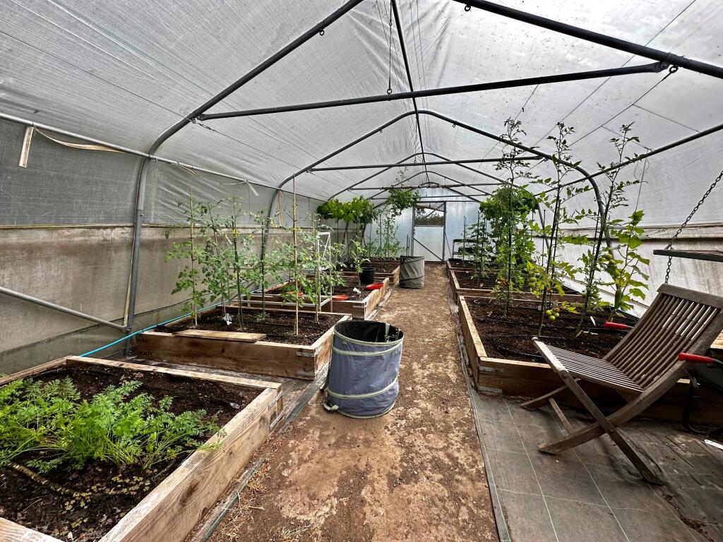 A detached, 5-bedroom property in St. Briavels, Lydney, Gloucestershire. The house features a traditional style with modern updates. It includes a large garden with mature trees, a greenhouse, and a patio.