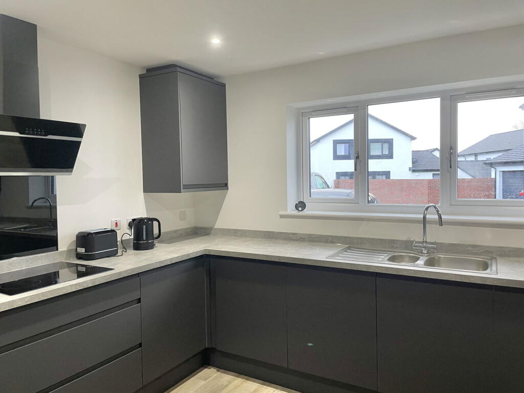 A substantial detached modern family home, in a convenient location. Entrance hall, open plan kitchen/dining/living area, cloakroom, utility, four double bedrooms (master with en-suite), family bathroom, large garage, driveway, gardens, GCH & PVCu D/G.