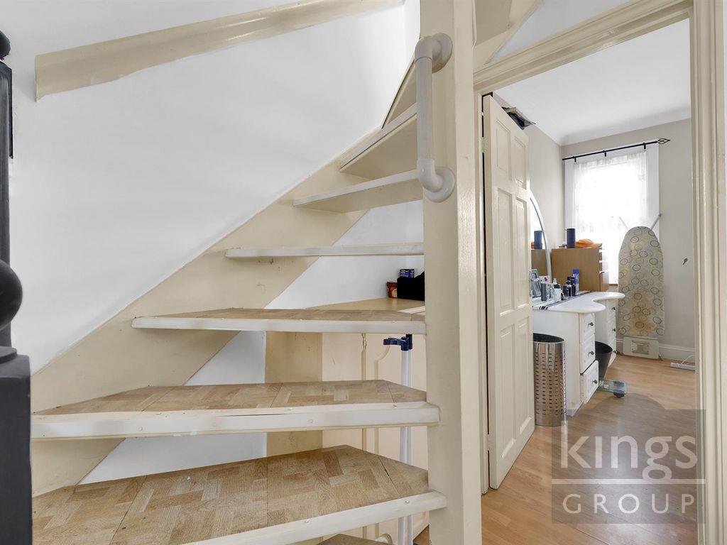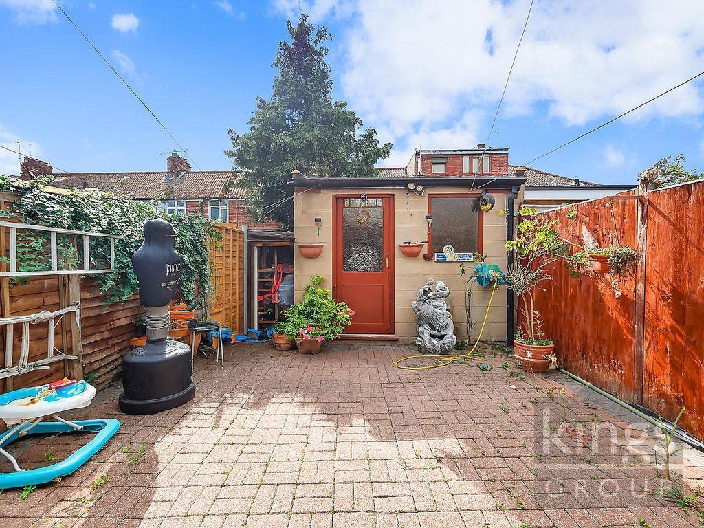 This is a three-bedroom terraced house on Westminster Road, Lower Edmonton. The property offers 1,046.25 sqft of living space and includes two bathrooms. It features a garden with a shed. Nearby amenities include several schools and transportation options, such as Edmonton Green station. The property is listed for £450,000, which is below the average price per square foot for the area. The house appears to be in fair condition, with some modern updates but could benefit from some refurbishment.
