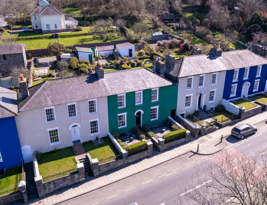 "Characterful double-fronted Georgian 4-bedroom residence in Aberaeron. Elegant former sea captain's house with modern spaces, landscaped garden, rear parking, & cellar. Coastal town location."