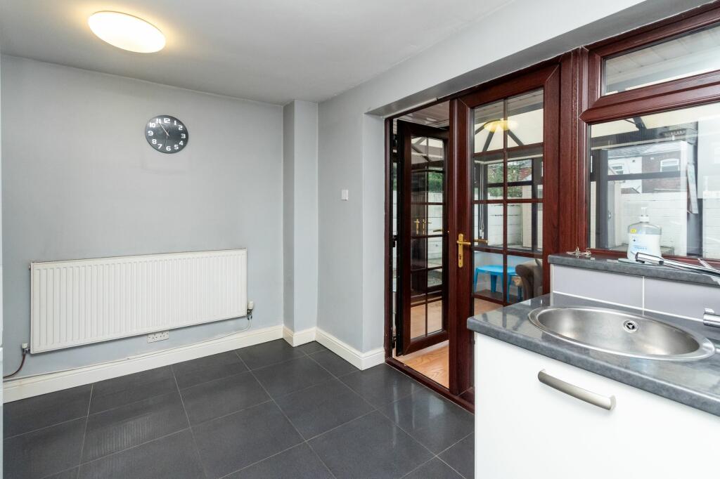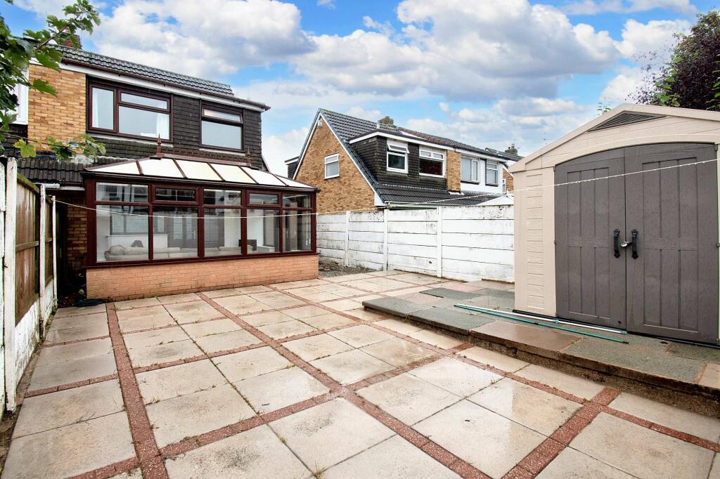 This three-bedroom semi-detached house in Clock Face, St Helens, is listed at £170,000. The property benefits from a modern kitchen and bathroom, and a conservatory extension overlooking a paved rear garden with a shed. The location is convenient for local schools and transport links, with Lea Green train station within a reasonable distance. However, the average house price in the area is significantly higher (£614,521), and the average price per square foot is considerably more (£481) than what is being reflected in the list price. The property appears well-maintained from the images provided. More information on the plot size would be beneficial to provide a more comprehensive analysis.
