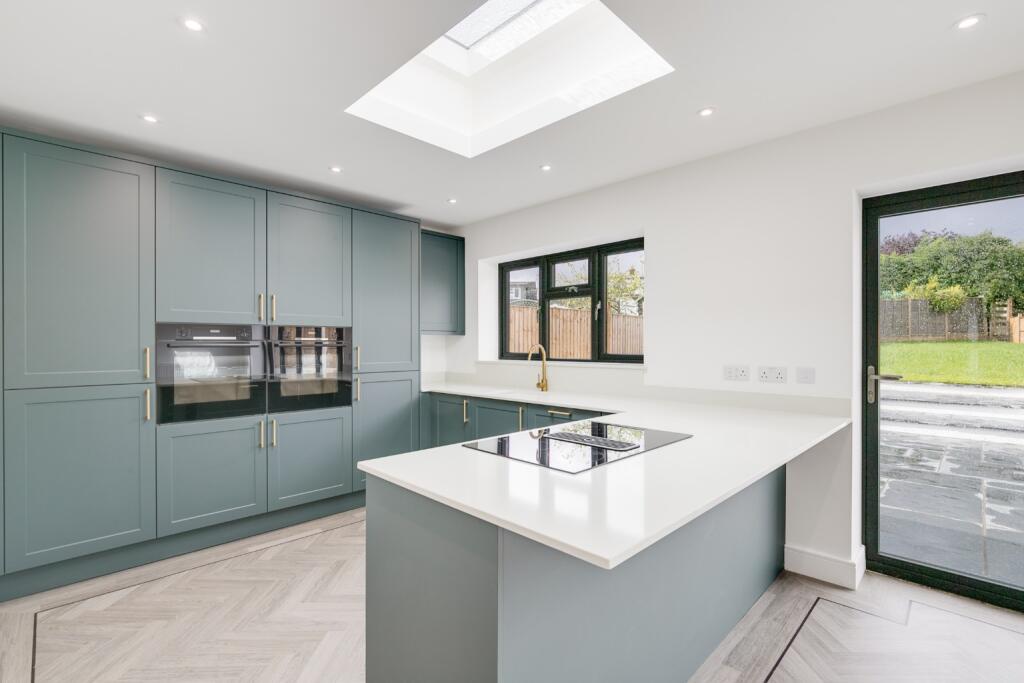 This property, located on Brook View in Hitchin Highbury, Hertfordshire, is a four-bedroom, three-bathroom house listed by Putterills for £800,000. The provided photographs showcase a newly renovated or extended home with a contemporary design. The interior presents a modern and open layout. The kitchen is fully equipped with high-quality appliances and features an island. The flooring throughout is modern and consistent. The external area includes a paved patio and a grassed garden, though the exact plot size is not given, it appears to offer a decent outdoor space. The property’s proximity to schools like William Ransom Primary (Outstanding Ofsted) and its relatively close distance to Hitchin train station enhances its overall appeal to potential buyers. The lack of plot size details in the listing is a notable omission. More information about this, alongside a precise square footage measurement for the house itself would allow for a fuller assessment of value. However, based on visual appearance and comparable properties in the area (where data is available), the property appears to be in a desirable location and good condition, making it attractive to families.
