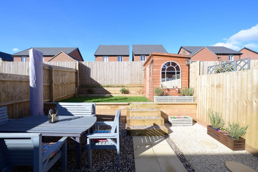 The property is located in Ross East, Herefordshire. While specific amenities are not detailed, the proximity to several schools with “Good” Ofsted ratings suggests a family-friendly area. Further information on the proximity to shops and transportation links would be needed for a more comprehensive assessment. Based on the provided images, the property appears to be in excellent condition. The interior is modern, clean, and well-maintained, with contemporary fixtures and finishes. There are no visible signs of wear or damage. The property includes a garden with a patio area and a shed. The size of the plot (933 sq ft) is relatively small but sufficient for a garden. The list price of £310,000 is slightly below the average price for the area (£376,862). However, the property’s size (737.5 sq ft) is considerably smaller than the average (2,253 sq ft). Considering the average price per sq ft in the area is £167, a property of this size might be expected to list for around £123,000 (£167 x 737.5). The list price is significantly higher, suggesting it may not represent the best value for money, especially when compared to nearby properties with similar characteristics. However, the modern condition and inclusion of a garden could justify a higher price per sq ft than the area average. More information on comparable properties in the immediate vicinity would be beneficial for a more precise price evaluation.