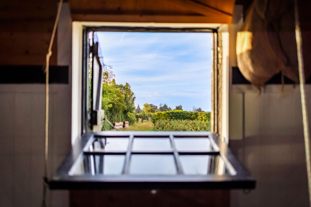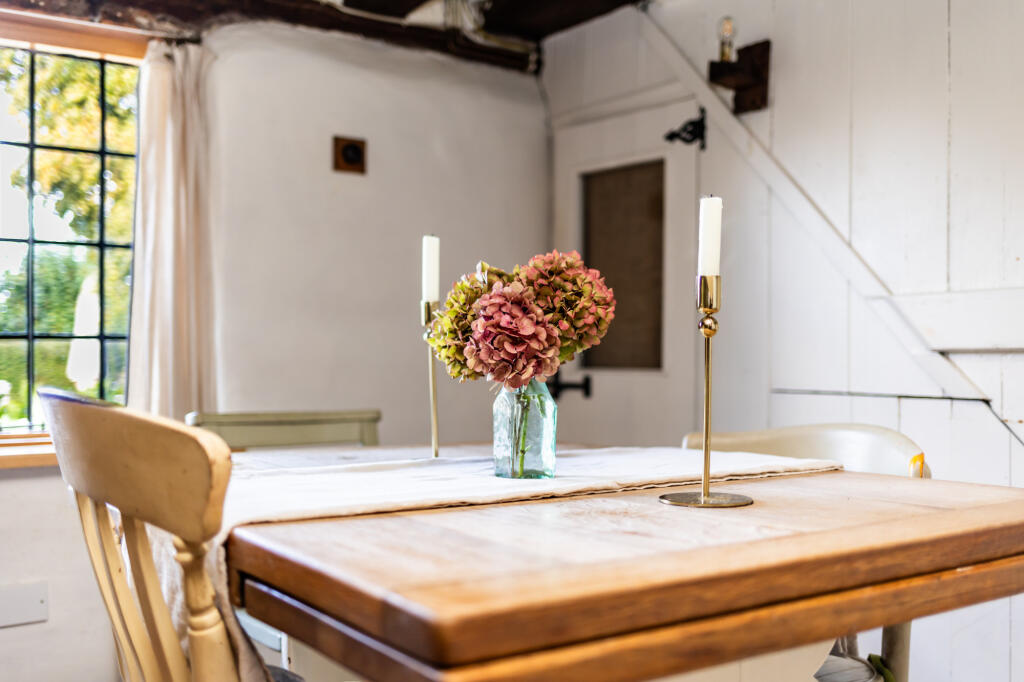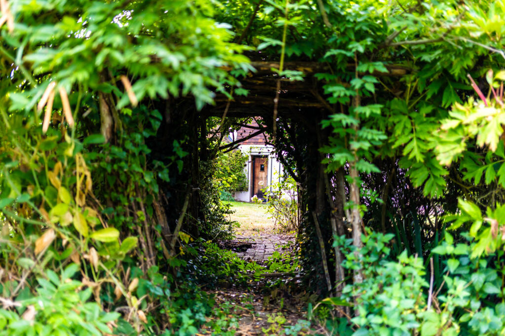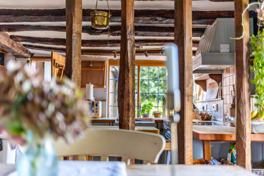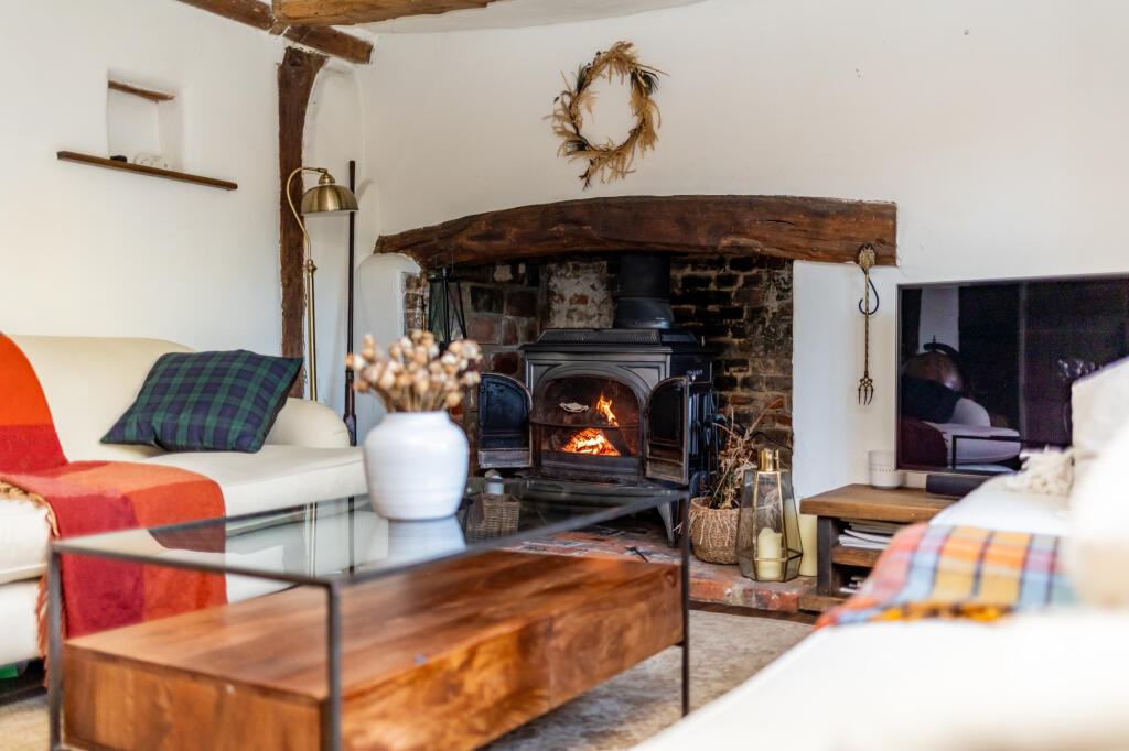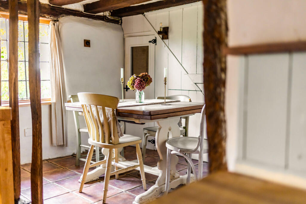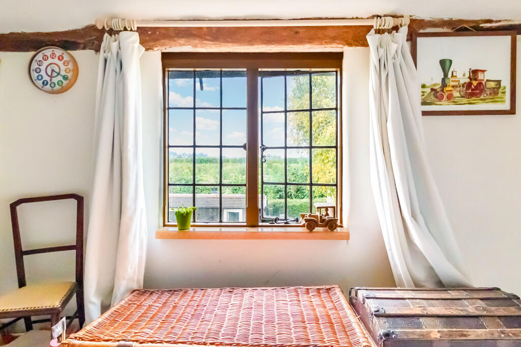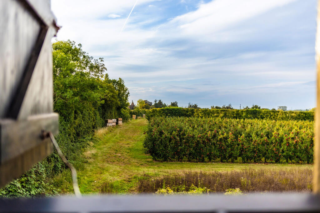 Amidst picturesque orchards, this Grade II listed, two-bedroom cottage is a charming medieval retreat. Dating back to the 17th century, its timber-framed structure exudes historical character. The property offers surrounding garden and views across apple orchards and theThames estuary.