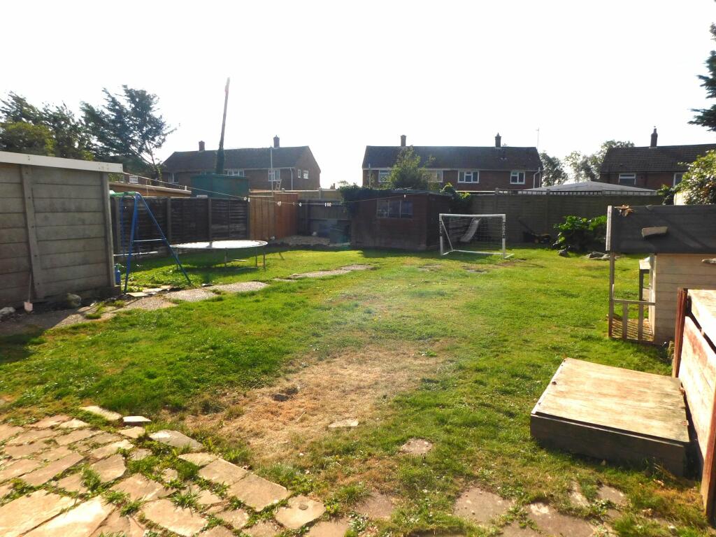 The property itself boasts a good-sized garden, spacious enough for family use and featuring a trampoline and shed. While the garden seems a very positive feature, the house’s interior shows a mixed picture. The flooring throughout appears reasonably modern. However, the kitchen and bathroom show some age and would likely benefit from modernization. Some areas of the property show general wear and tear which could be addressed through refurbishment. In short, the property presents an opportunity for a family to move into a home in a good area and create a living space to their taste. The current condition of the property does not detract from its potential. However, potential buyers should budget for improvements and upgrades to achieve their desired level of living comfort.