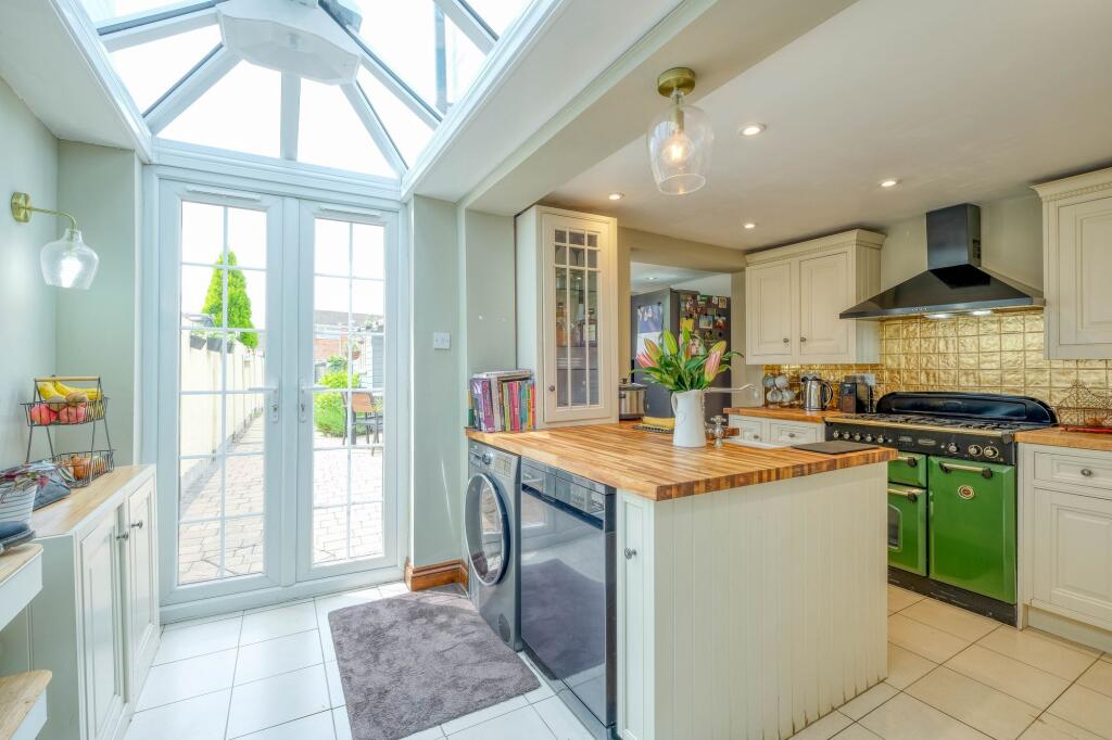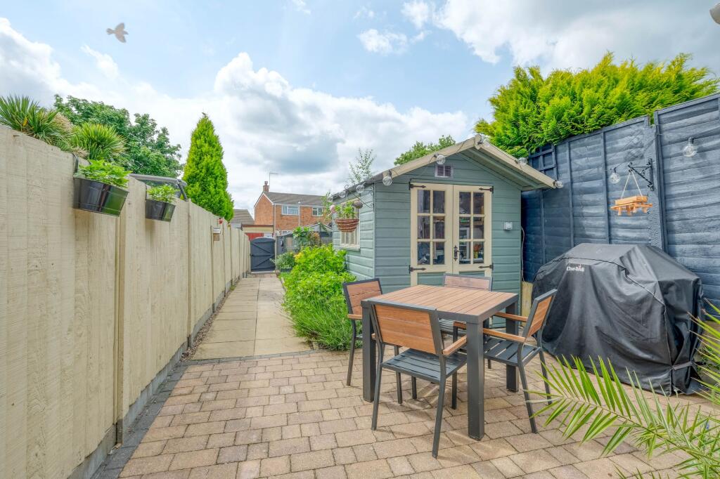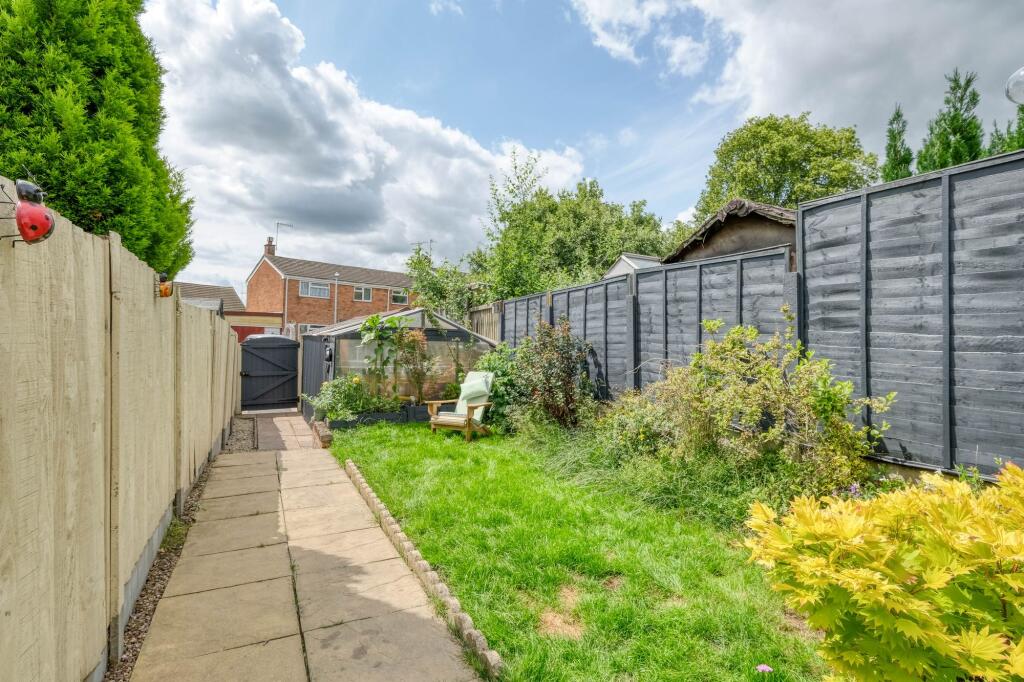 3 bed end of terrace near Bromsgrove town. Features hallway, dining & living rooms, fitted kitchen, w.c., 2 bathrooms, garage, garden, and parking.