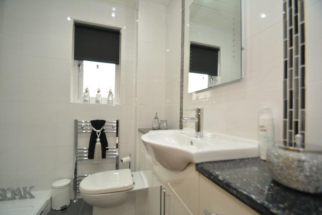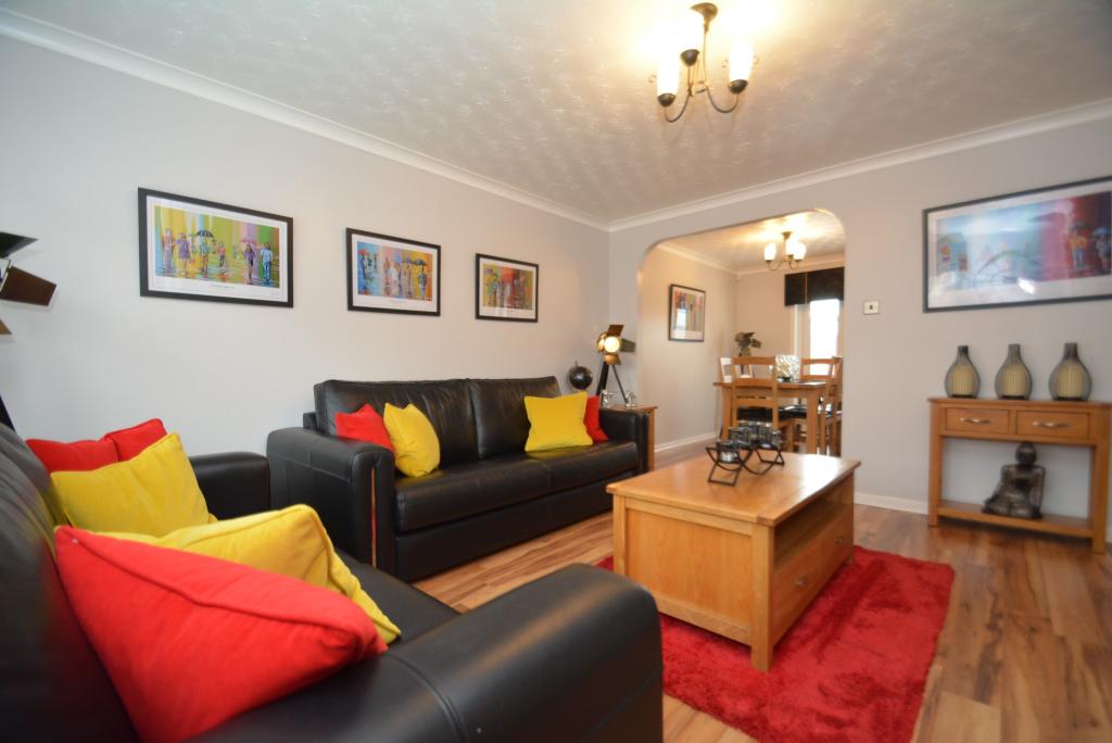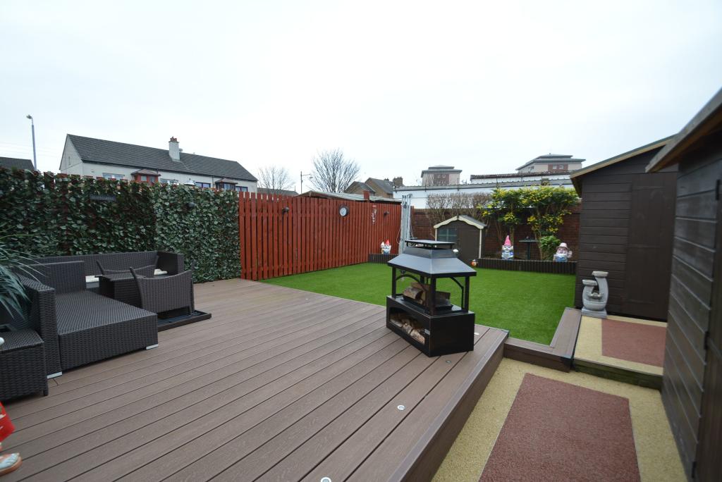 Stunning modern END TERRACE VILLA situated within an exclusive and sought after development within this popular high amenity district. <br /> <br />This superior family home has been improved to an uncompromising standard and specification and is in "turnkey" condition and is unquestionably one of the finest homes available within the district. <br /> <br />Decorative double glazed front door onto entrance hall, beautifully presented lounge with aspects to front, open plan dining room with French doors onto enclosed and carefully laid out and landscaped south facing rear garden with deck, access to professionally designed and fully fitted (circa 2017) kitchen with aspects over rear garden and replacement double glazed and PVC panelled door to side. The preparation area comprises extensive floor and wall mounted polished white veneer fronted units with complimentary work tops and wet wall splash back, integrated double oven, hob and hood, deep pantry store extending below stairs. <br /> <br />First floor: L shaped landing with replacement ornate balustrade, deep storage cupboard, two double bedrooms (each with built-in wardrobes), single bedroom, beautiful refitted and fully tiled (circa 2018) shower room comprising three piece suite to include wash hand basin and WC in white vanity unit, ceiling lined in PVC with downlights. <br /> <br />The specification includes gas central heating and replacement PVC double glazing installed 2012. Recently completed improvements include the installation of hardwood laminate floor finishing. Whilst externally the garden has been carefully laid out for low maintenance and includes a large raised deck with uplighting to the south facing rear garden. Replacement timber fencing, replacement PVC roof lining, gutters and down pipes. Off street parking/drive to front. <br /> <br />Felton Place is nearby Alderman Road with excellent shopping and public road transport, convenient for a choice of schooling at primary and secondary levels, Yoker Station, Clydebank, Anniesland and City Centre, etc. <br /> <br />TRAVEL INFO <br /> <br />Travelling west along Alderman Road from the junction with Dyke Road continuing to the roundabout take the second exit onto Beil Drive past Dornal Avenue on right, turning right into Felton Place and number 5 is on left.