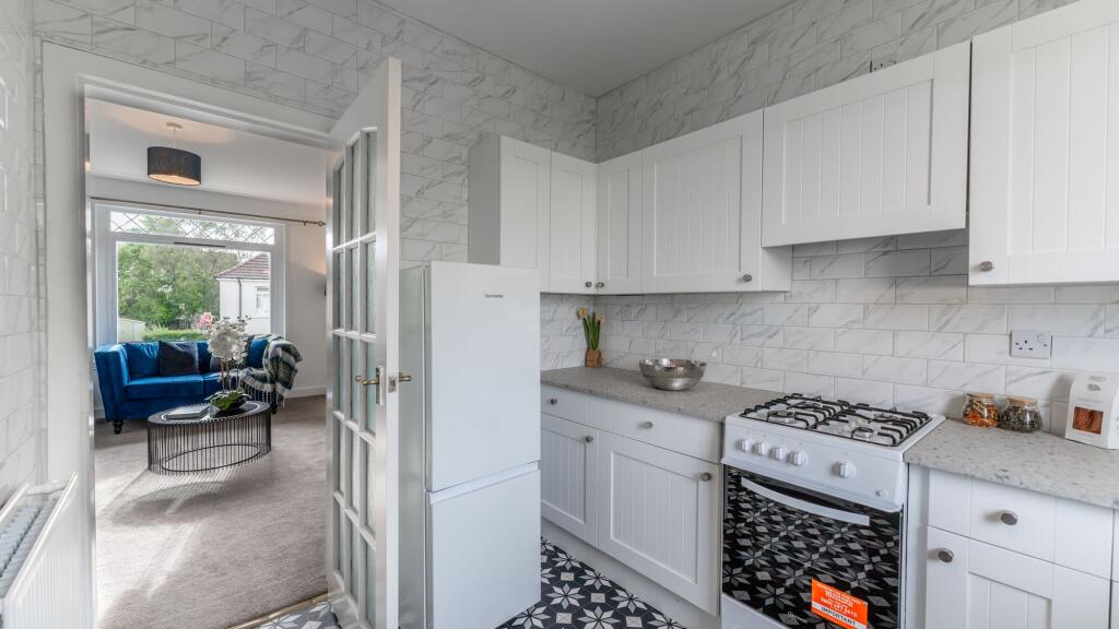 This is a well-presented two-bedroom flat in the Knightswood area of Glasgow. The property is in good condition and benefits from a modern kitchen and bathroom. It also has a good-sized garden with a shed. The location is convenient for local amenities, schools, and transportation links. Overall, this property represents a good opportunity for first-time buyers or investors.