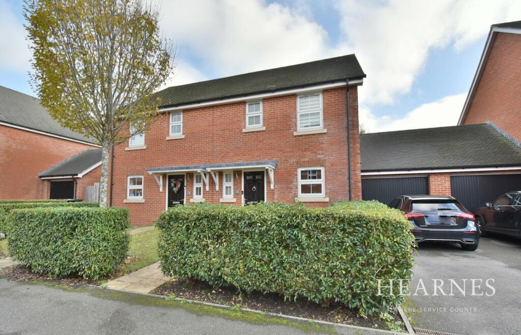 A SUPERBLY APPOINTED THREE BEDROOM, one bathroom, one shower room semi detached family home built in 2017, with a larger than average GARAGE, OFF-ROAD PARKING for two cars and secluded REAR GARDEN. Approximately 50 yards from the SANG land.
