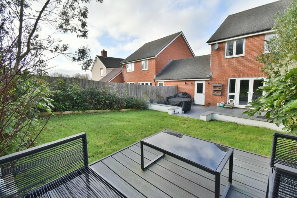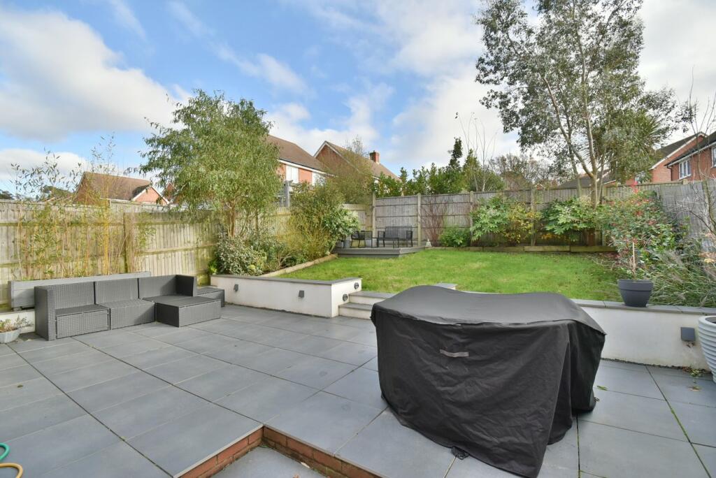 This three-bedroom, two-bathroom house located on Paddocks Way in Ferndown, Dorset is presented in excellent condition, reflecting a modern and well-maintained property. The property showcases a contemporary interior design, with an up-to-date kitchen and bathrooms. The images highlight a well-proportioned living space that benefits from natural light. Additionally, the property includes a sizable garden, featuring both a lawn and a paved patio area, along with decking, which will appeal to buyers looking for outside space. Nearby schools are within a reasonable distance and the property’s location provides access to local amenities, although not within walking distance. The listed price falls within the range of similar properties in the area, making it a potentially attractive option for buyers. The lack of plot size data in square feet makes a definitive analysis on the value per square foot impossible, however the price is reasonable in relation to comparable listings. The property’s appeal will likely resonate with families or professionals seeking a ready-to-move-into home in a desirable location.