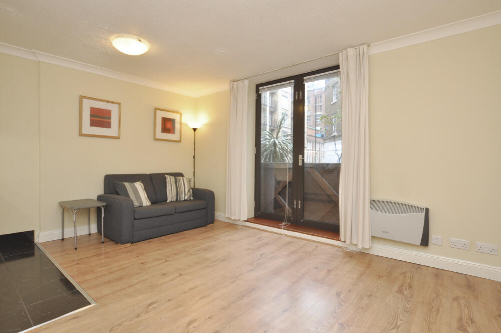 This ground floor studio apartment is situated in Aldersgate Court on the quiet Bartholomew Close, set back off Smithfield market and close to the Barbican, Farringdon Station and St Paul's.