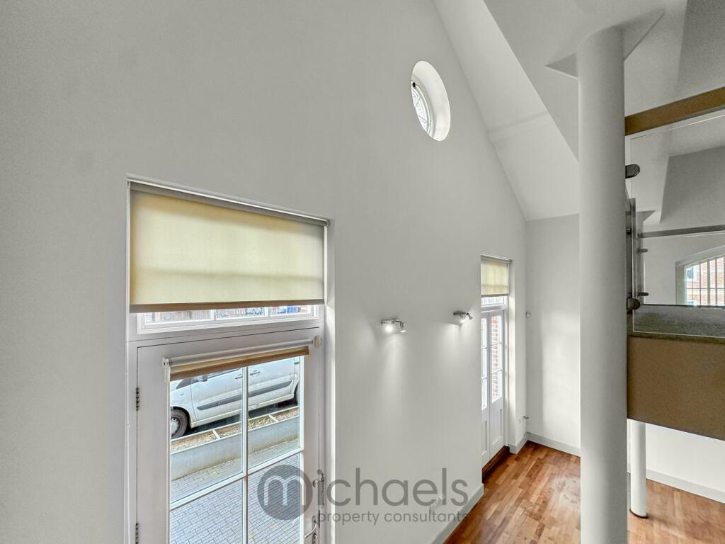 The property is a 1-bedroom, 2-bathroom apartment located in Colchester, Essex, close to a train station and several schools. The apartment appears to be in good condition based on the provided images, showing a modern conversion with contemporary interior and updated fixtures. However, the lack of square footage data makes a full evaluation difficult. The list price of £215,000 might be considered relatively low compared to the area average, but a precise comparison is impossible without knowing the property’s size. The absence of information regarding the property’s plot size prevents a definitive assessment of the land aspect.