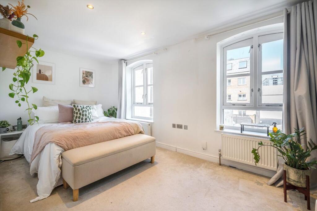 A spacious three bedroom, three bathroom house set within a private gated development next to Regent's Canal. It has a private patio garden with canal views, two bathrooms, open plan kitchen living space.