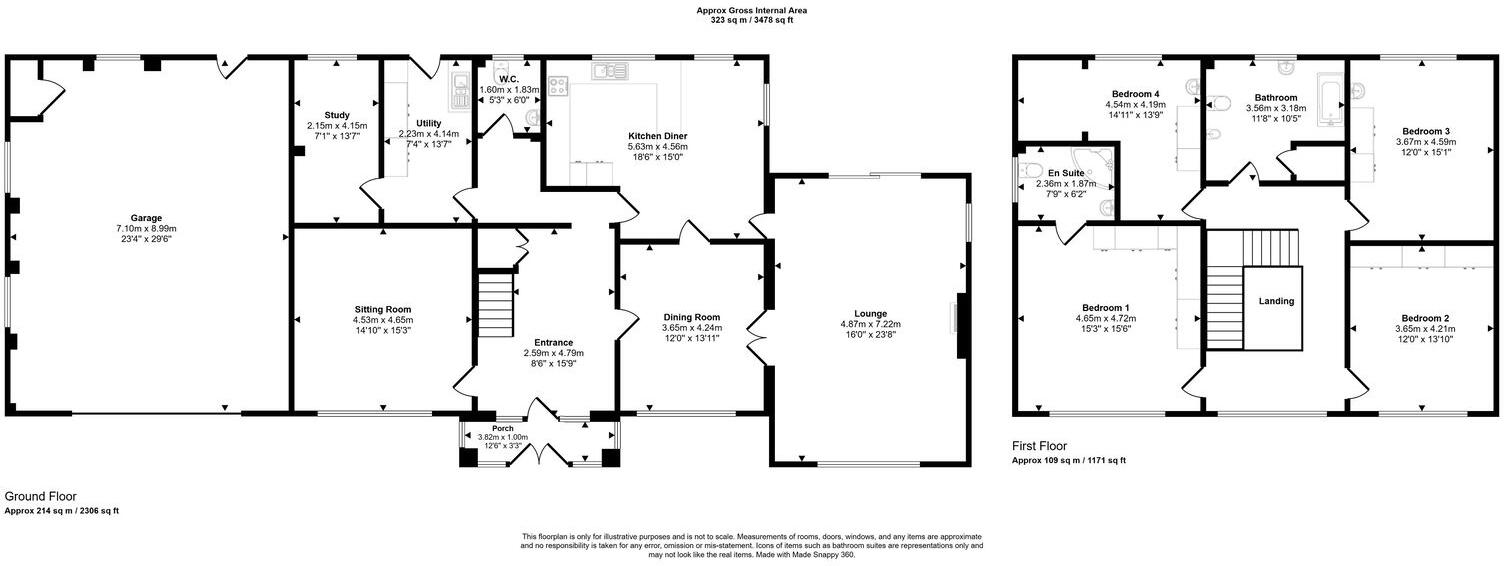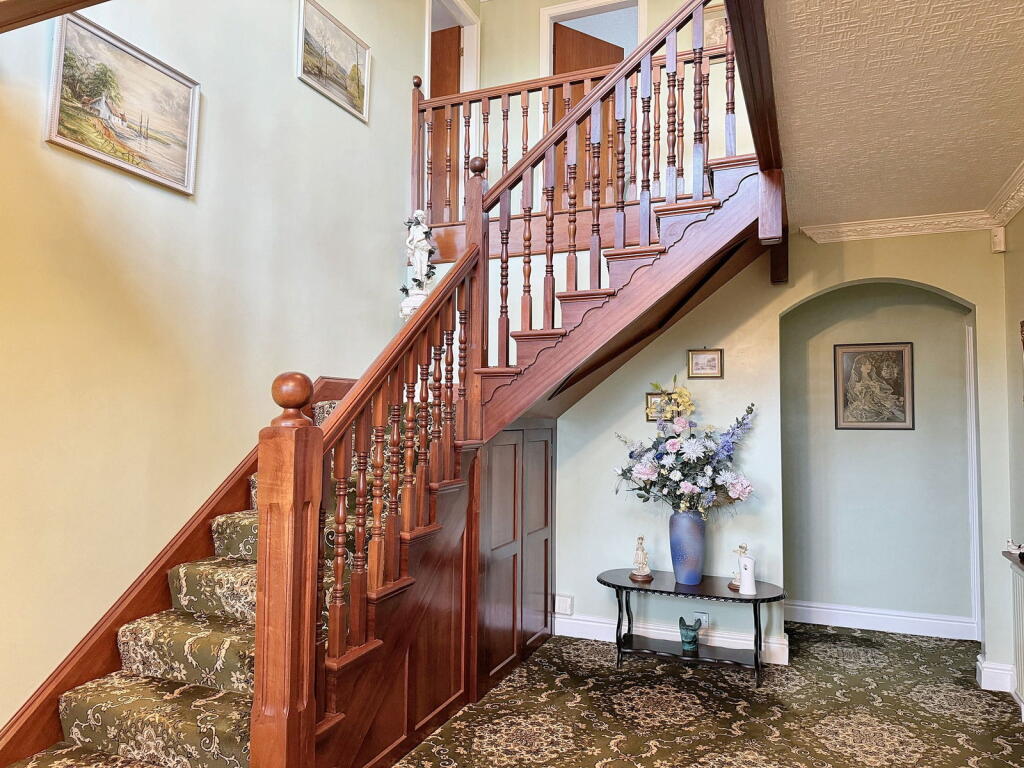 This property is a detached house located in Abergele, Wales. It has 4 bedrooms and 3 bathrooms, and a total area of 3,174.28 sqft. The property is set on a plot of 3,476.74 sqft and benefits from a double garage. The house appears to be in good condition, although some aspects of the interior decor and kitchen may be considered dated. The property is situated in a residential area with a train station within a reasonable distance, and several schools within approximately 2.5 kilometers. While the list price is above the average price for the area, it is important to note that the property is significantly larger than the average house in the area (3,174 sqft vs 1,076 sqft). The price per sqft is not significantly higher than the area average. The property benefits from a substantial garden.