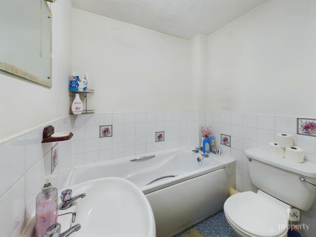 The property itself appears to be in fair condition. While the images show a functional layout, the kitchen and bathrooms appear dated and could benefit from modernisation. The small rear garden provides some outdoor space.