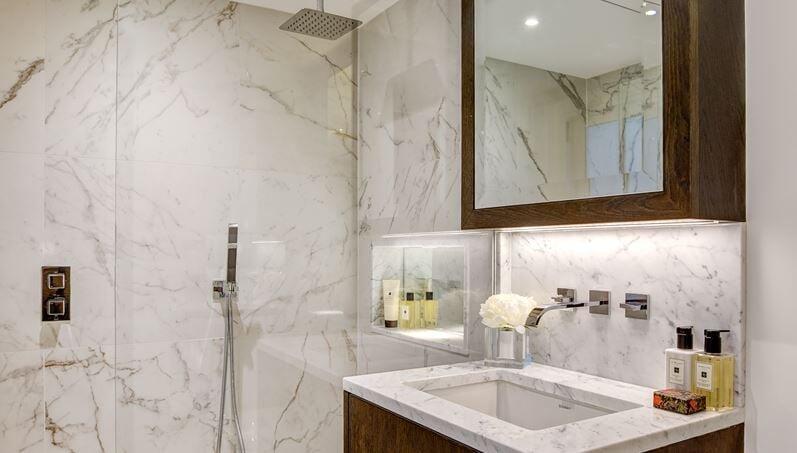 An elegant, 1120 sq. ft., 2-bedroom 2-bathroom apartment positioned on the third floor with a large private terrace with spectacular views over Kensington.