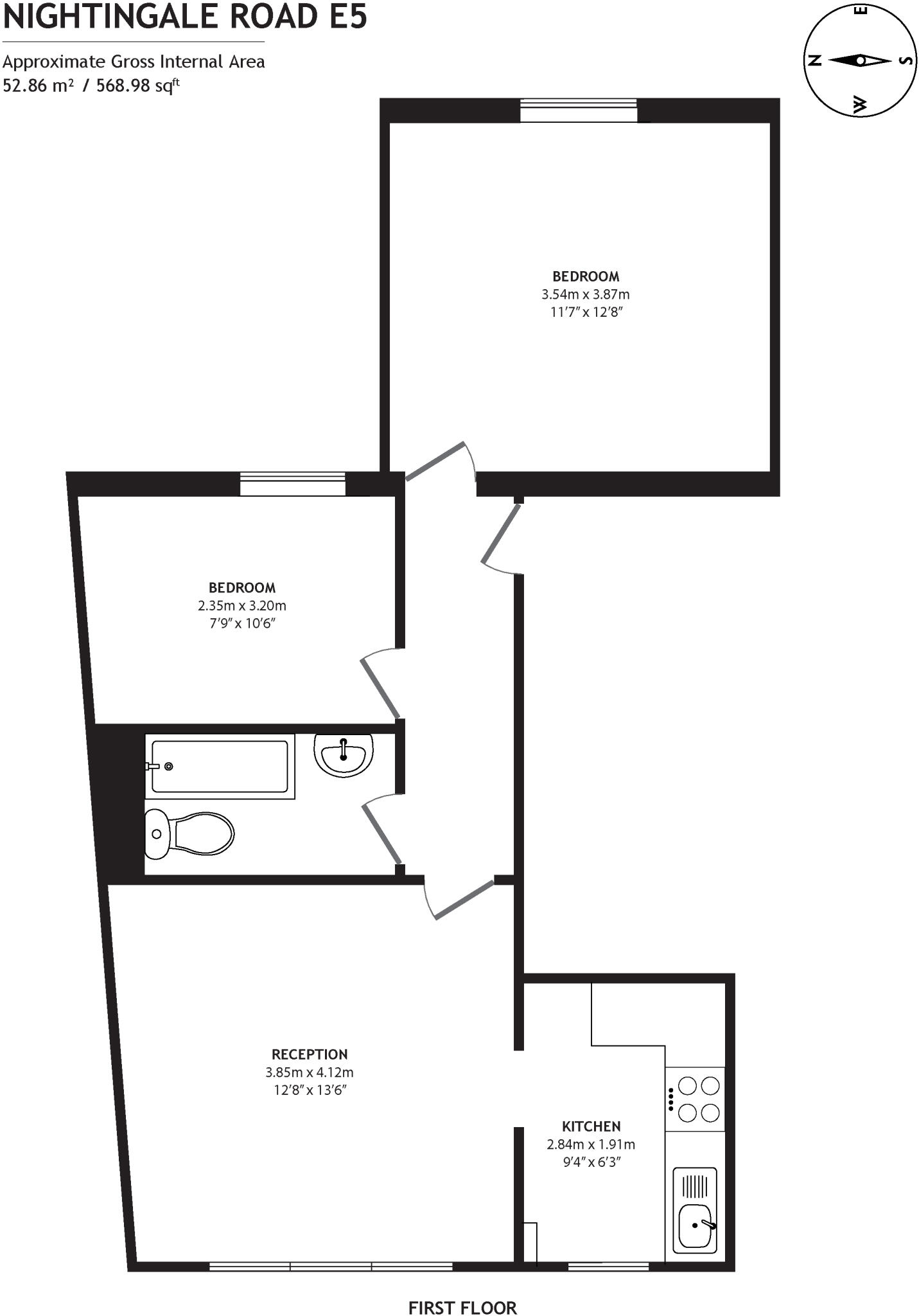 A two-bedroom flat on Nightingale Road, Clapton. Close to schools and transport links. Seems to be in good condition.