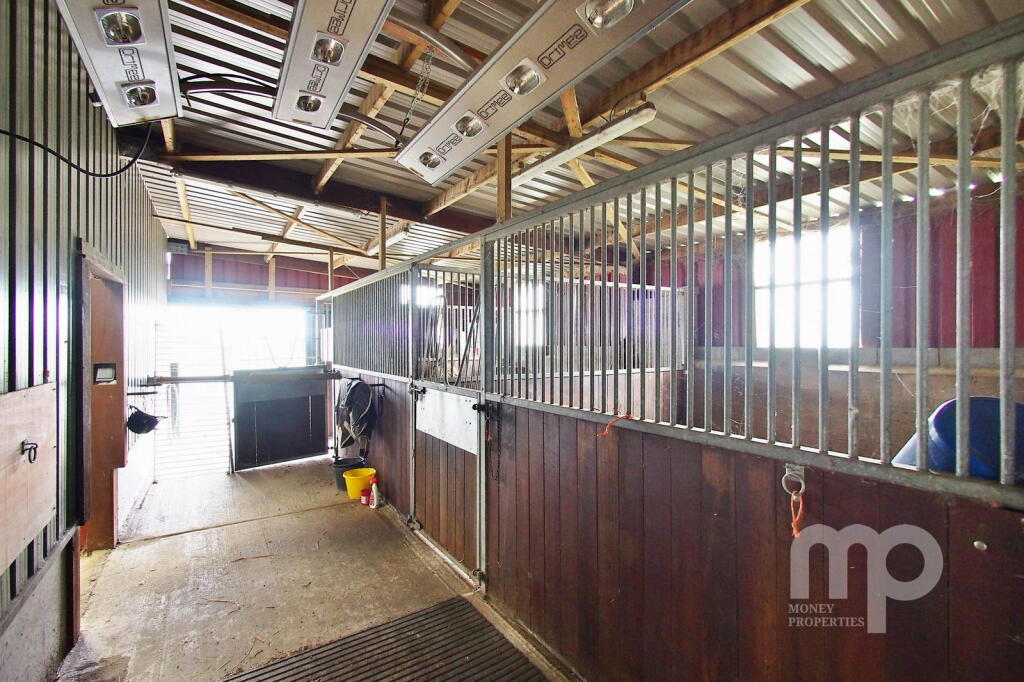 Moneyproperties proudly presents this Equestrian land with a three bedroom detached bungalow approaching 7 acres to include a professionally-constructed 95m x 145m outdoor ménage, 2 outdoor paddocks and a 52'4 x 32'1 barn which houses 4 stables and a separate feed and tack room on concr...