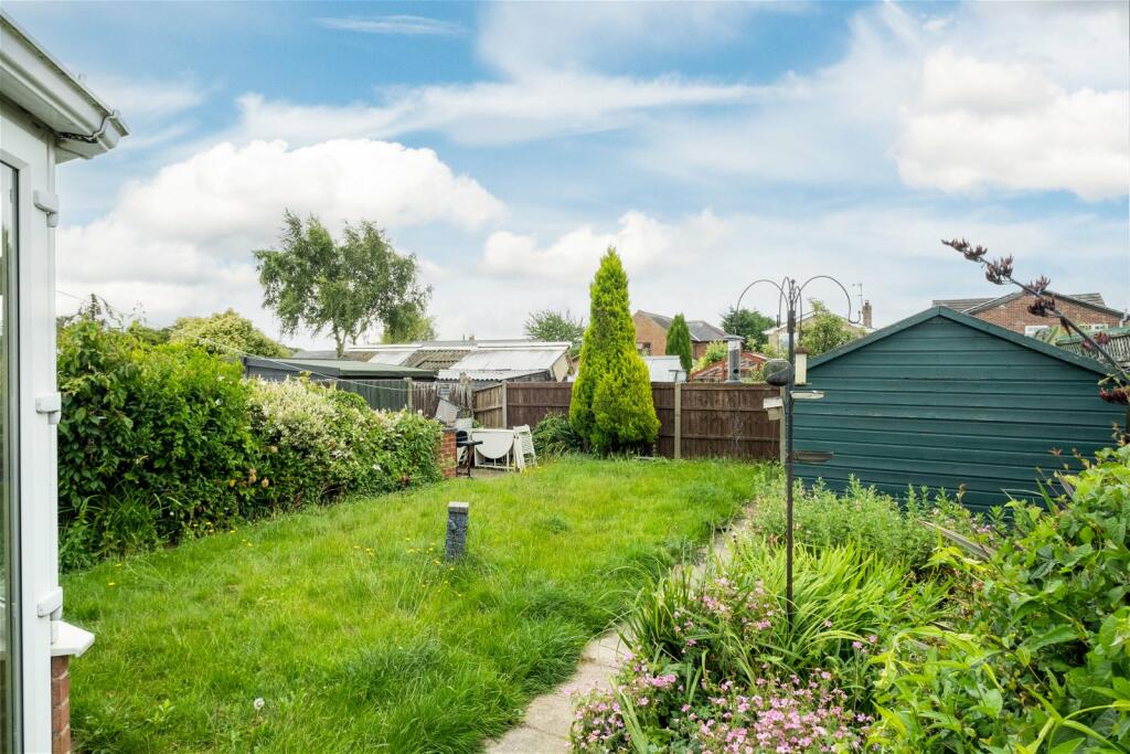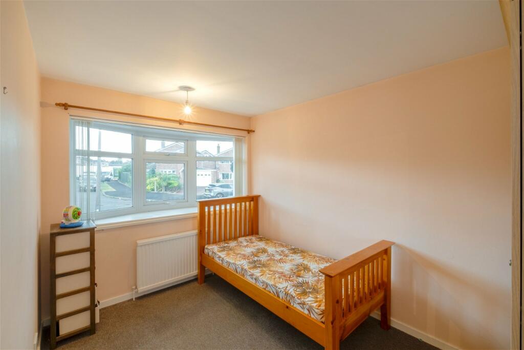 This spacious detached bungalow with South facing rear gardens, a private driveway, and an attached single garage is offered to the market with no upward chain.