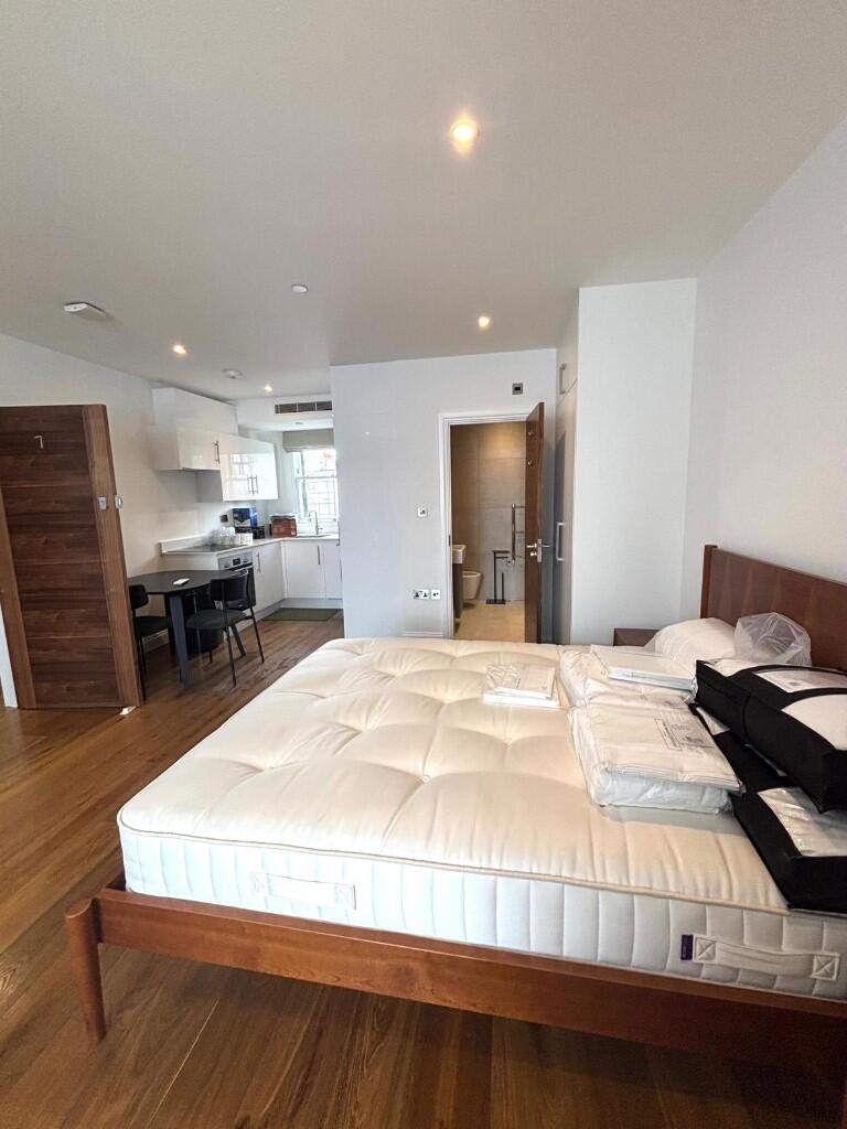 Spacious and modern studio apartment set in a luxury concerted mansion block in Gordon Place, Kensington. Furnished to a high standard throughout and featuring high ceilings, wood flooring, double bed, fitted kitchen, living area and bathroom.