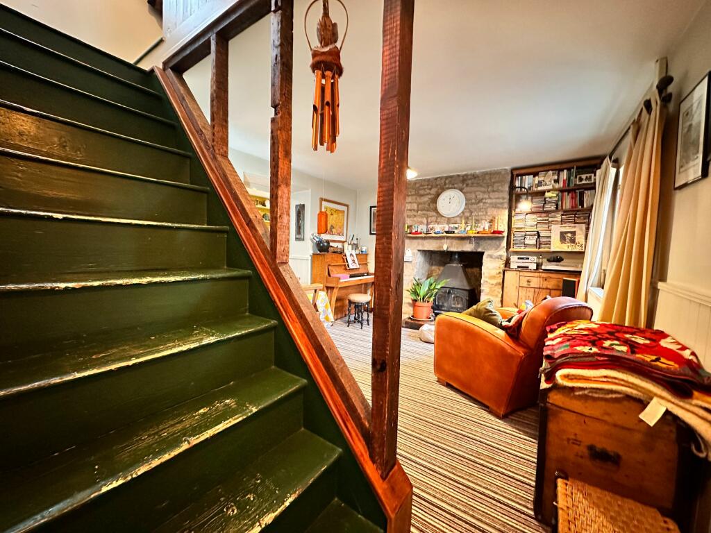 A cosy and characterful two bedroom stone constructed semi-detached cottage with large gardens providing views over the River Severn and beyond, garage/workshop space, and driveway, situated in a popular semi-rural location.