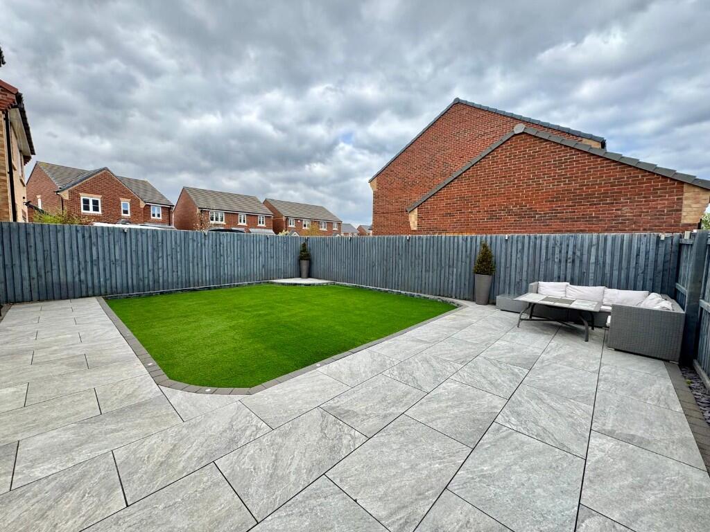 This property is a modern, well-maintained four-bedroom detached house located in Silverdale Gardens, Redcar. The location benefits from proximity to several primary schools, including Wheatlands Primary School (1.32km), and several train stations offering convenient transport links. The property itself is in excellent condition, boasting a modern interior with a contemporary kitchen and bathrooms. The images reveal a well-landscaped garden with artificial turf and patio area. While the plot size is not specified, the garden appears relatively sizable for a modern property. Compared to other nearby properties, the list price of £360,000 appears slightly higher than the average, but the superior condition, modern features, and what seems to be a larger garden than average could justify the price difference. Further investigation into the exact plot size and a comparison to similar properties with comparable features in the area would be beneficial to fully ascertain the value.