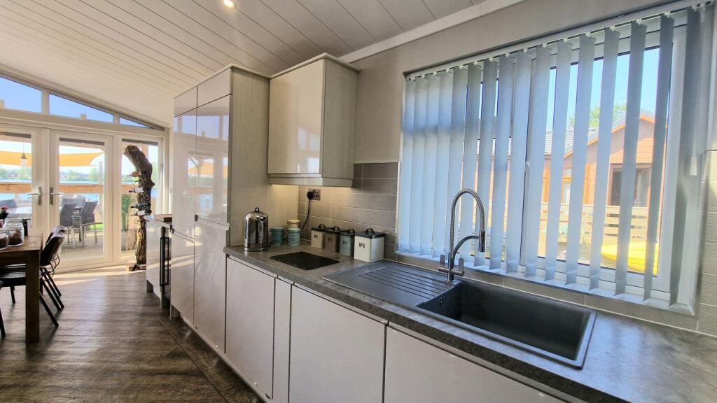 This property is a modern, well-maintained lodge located in the desirable Tallington Lakes development. The interior is stylish and contemporary, boasting a spacious open-plan living area, a modern kitchen with integrated appliances, and two well-appointed bedrooms. The exterior features a substantial decked area with a hot tub, offering excellent outdoor living space and stunning lake views. The lodge’s location provides a tranquil setting while still being within reasonable distance of amenities and services in nearby towns and villages. However, potential buyers should consider the limited public transport options in the area. The property is presented in excellent condition and appears to be a great option for those seeking a luxurious and relaxing lifestyle in a peaceful lakeside setting. The price appears reasonable for the area and the quality of the property, but further market research is recommended for a complete evaluation. The lack of precise square footage data for comparable properties makes a definitive price-per-square-foot comparison difficult.