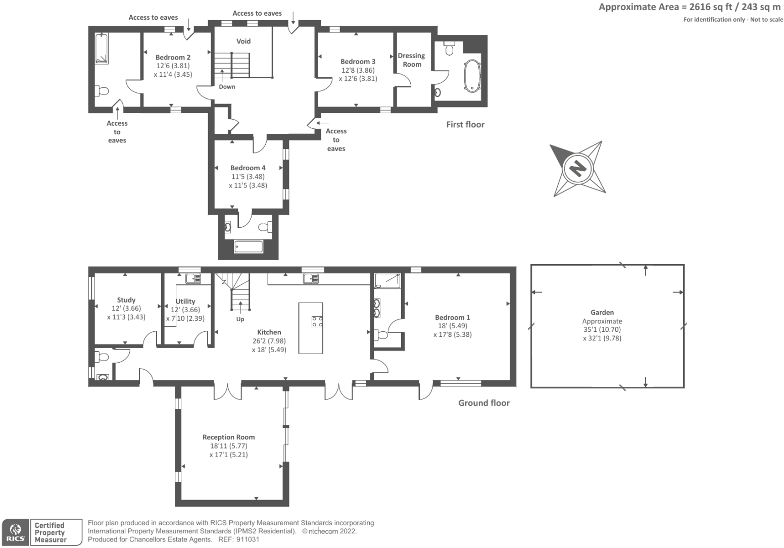This detached property is located in Leafield, Oxfordshire. The house has 4 bedrooms and 5 bathrooms, with a total square footage of 1,773.40.