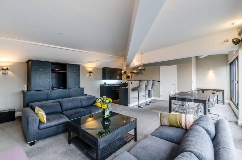 SHORT LET. Set on the 6th floor, this modern apartment boasts stylish accommodation including a large reception room, double size bedrooms, a smart kitchen and an expansive wraparound roof terrace.