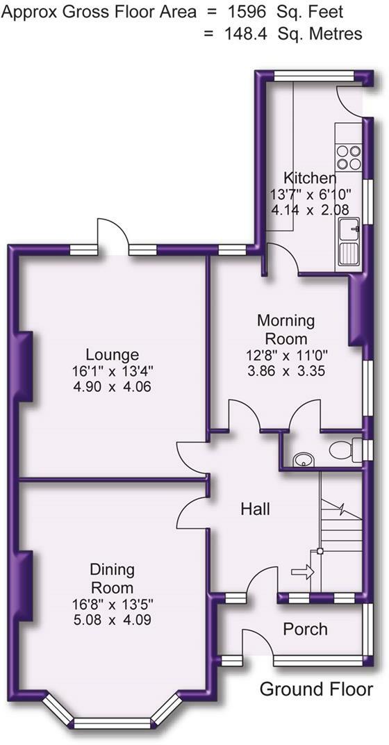 The property itself appears to be in need of significant modernisation and renovation. The interior images reveal dated decor, worn carpets, and some signs of damage to walls and ceilings. The kitchen and bathrooms are also outdated and require updating. The garden, while present, also looks somewhat overgrown and neglected. This suggests a low condition score. The plot size is relatively modest at 1,596 sqft.