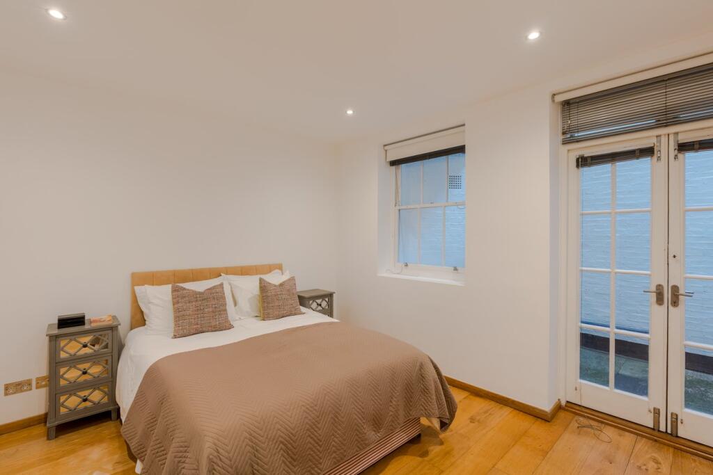 A rare opportunity to rent a spacious and elegant one-bedroom flat on the lower ground floor of this exclusive private garden square in Marylebone.