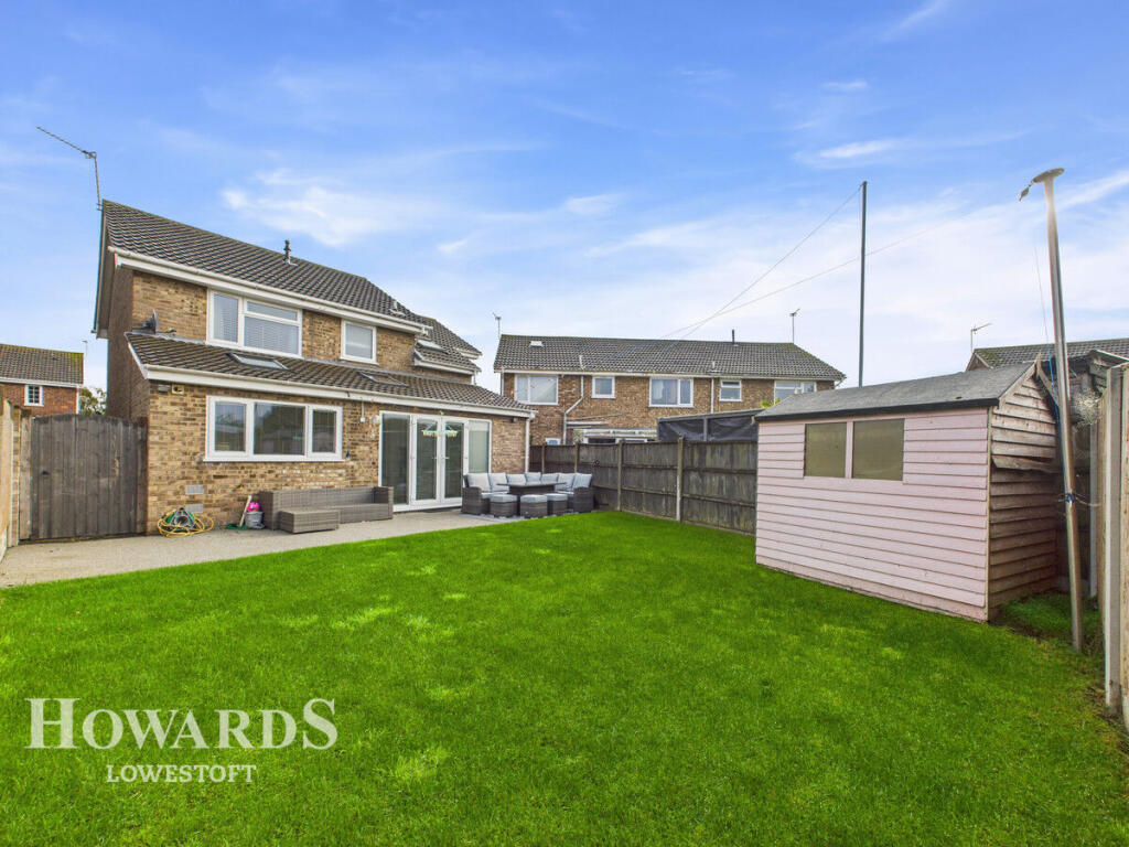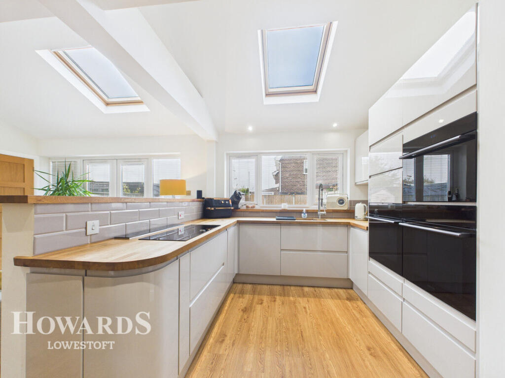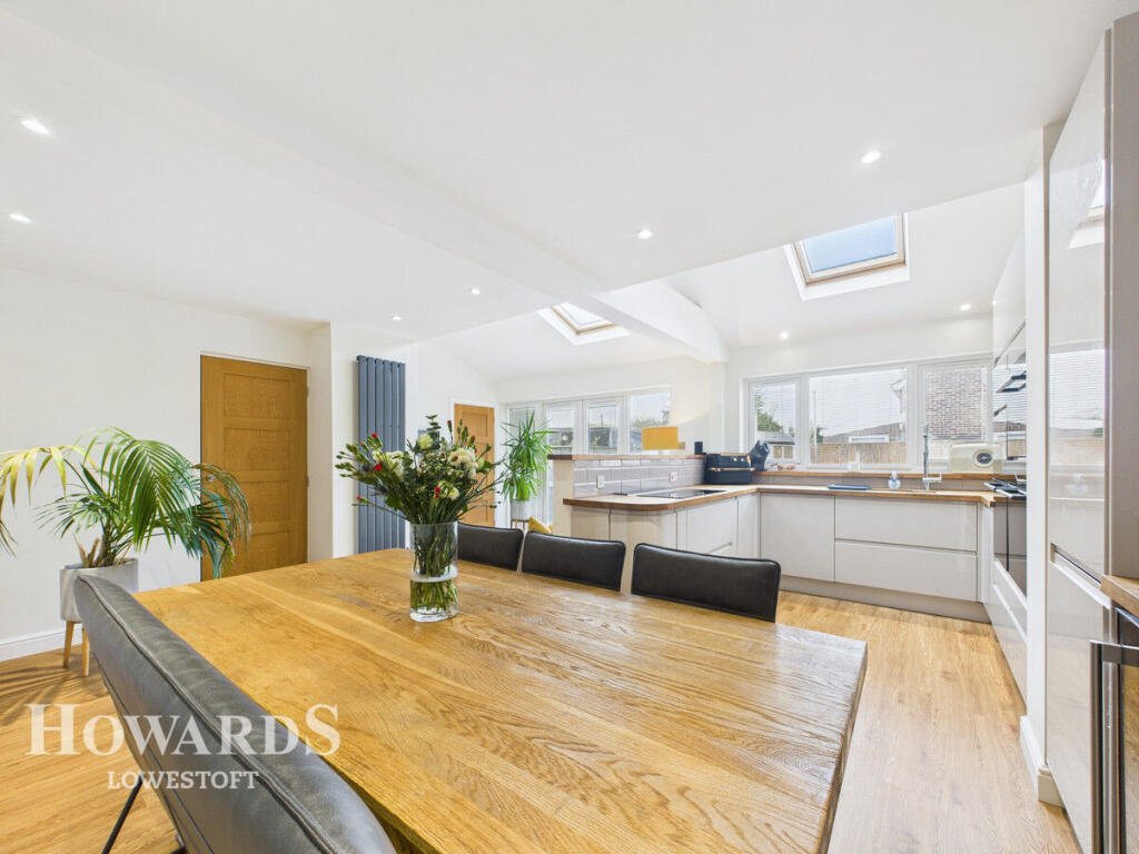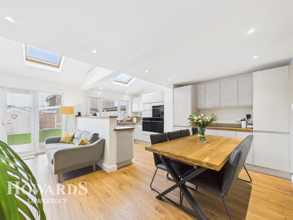 Stunning extended four bedroom detached home in Carlton Colville’s sought-after Eastfield Gardens. Immaculately presented and turn-key, featuring a showpiece open-plan kitchen/diner/snug, spacious living throughout, powered garage, large driveway and generous rear garden