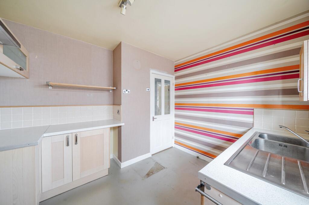 This property is a 2 bedroom, 1 bathroom detached bungalow situated in Berkeley Square, Havant. The property benefits from being close to local amenities and transport links, with Warblington train station just 0.43km away. There are also several well-regarded schools within a reasonable distance, including Warblington School (0.25km) and Fairfield Infant School (0.95km). The property itself requires some modernisation and updating, as evidenced by the images showing damaged walls and outdated fixtures. The kitchen appears to be in need of significant renovation. However, the property does boast a good-sized garden and a detached garage. The list price of £485,000 is slightly above the average price for the area (£436,333), but considering the size of the property (1,876 sqft) and the presence of a garden, it may be considered reasonable for the location, although the required renovation work will need to be factored in.
