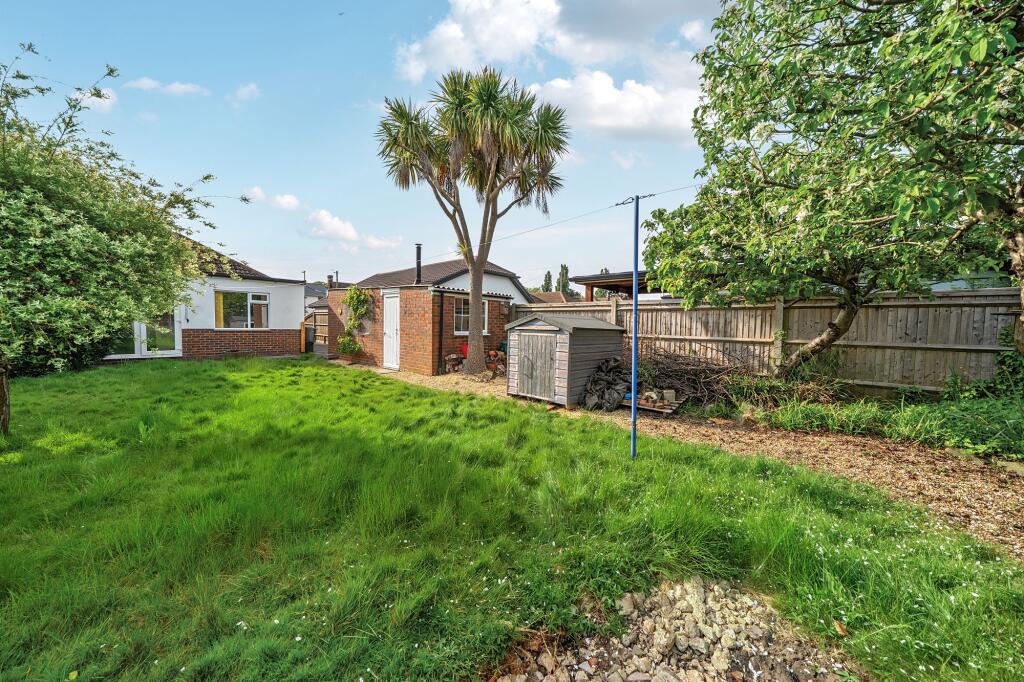 Charming 2-bed DETACHED bungalow with great potential in a DESIRABLE LOCATION. Light & spacious rooms, scope to extend, double glazing, gas heating. Private garden, GARAGE, ample parking. Ideal project, perfect for personalisation. Viewing recommended.