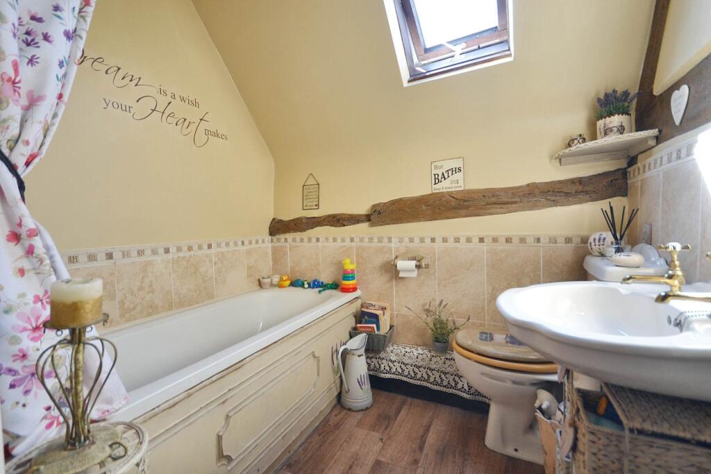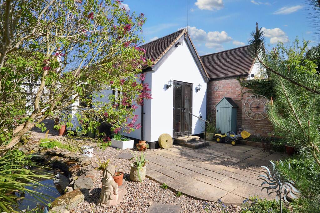 This property is a charming three-bedroom cottage with a detached one-bedroom annex, located in Eckington, Worcestershire. The cottage is a period property, evident from its exposed beams and traditional features. It appears well-maintained and in good condition, although some modernisation is present. The annex offers additional living space, potentially suitable for guests or multi-generational living. The property benefits from a sizable garden with mature trees and landscaping features, including a pond and shed. The location is desirable, with a nearby primary school and train stations offering convenient access to nearby towns. The list price of £450,000 seems reasonable considering the size, features, and location, although a precise valuation requires a professional appraisal. However, nearby comparable properties show a higher price per sqft.