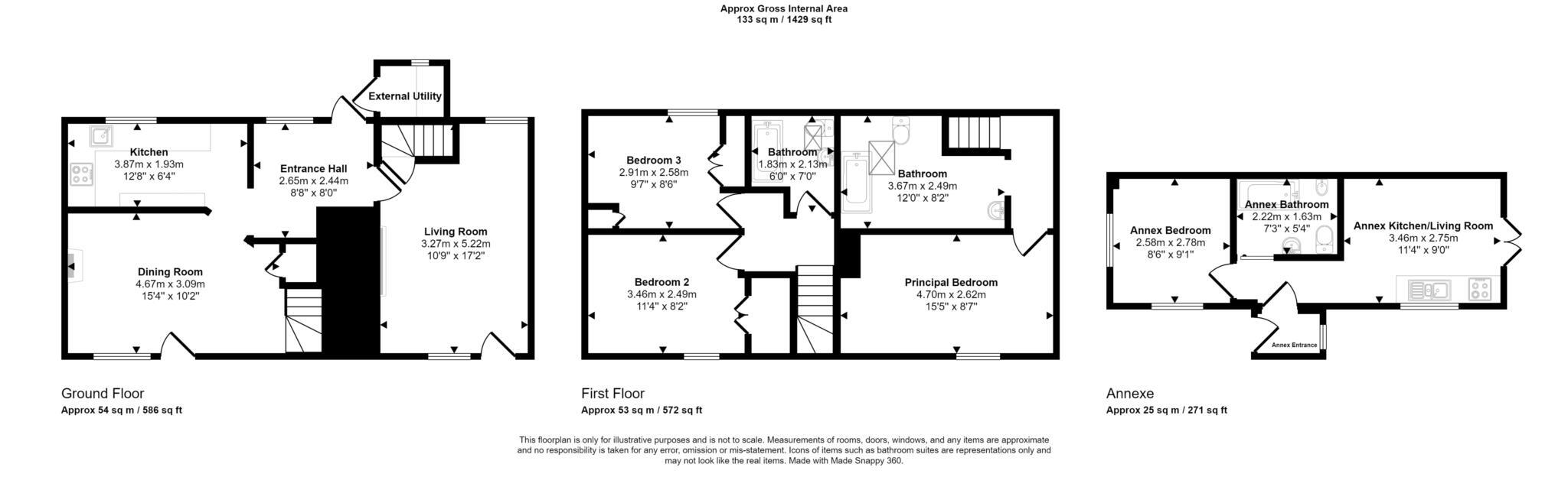 A three bedroom cottage with detached one bedroom annex