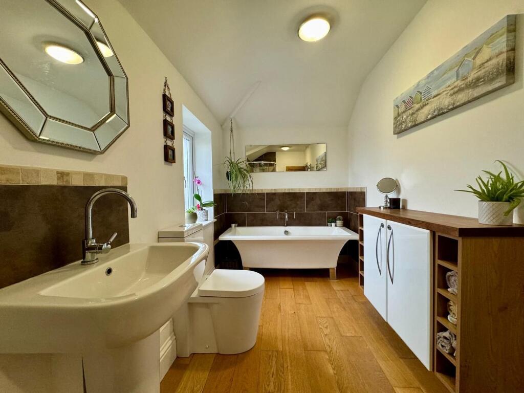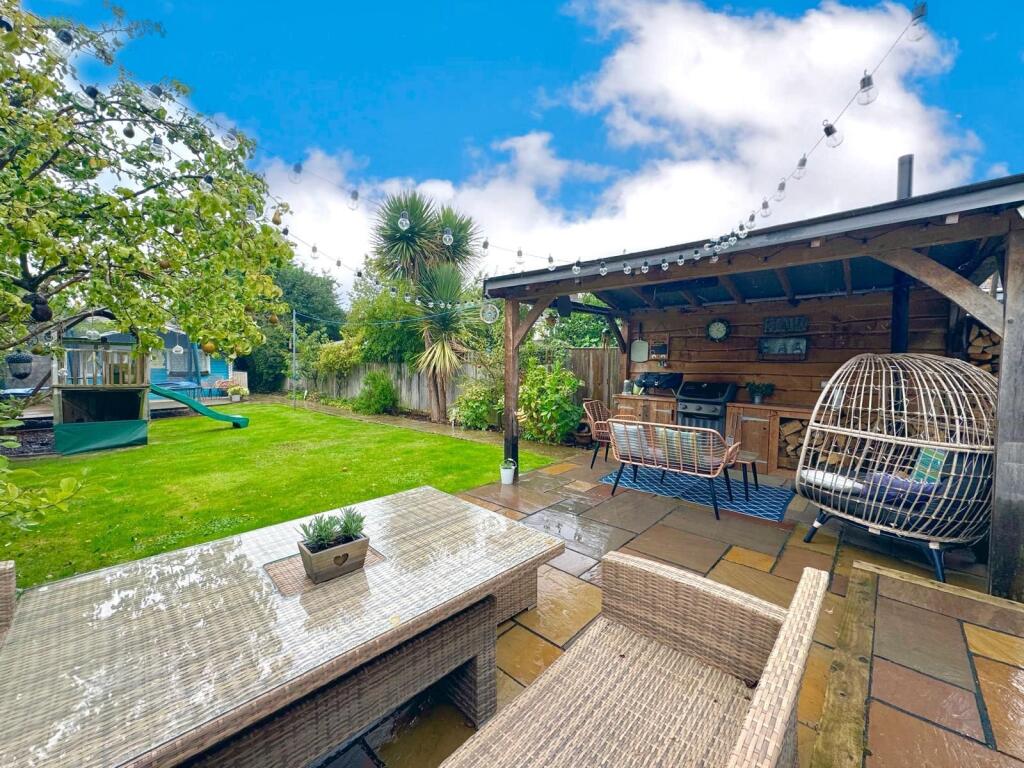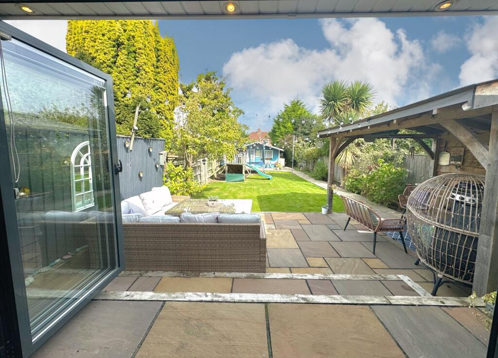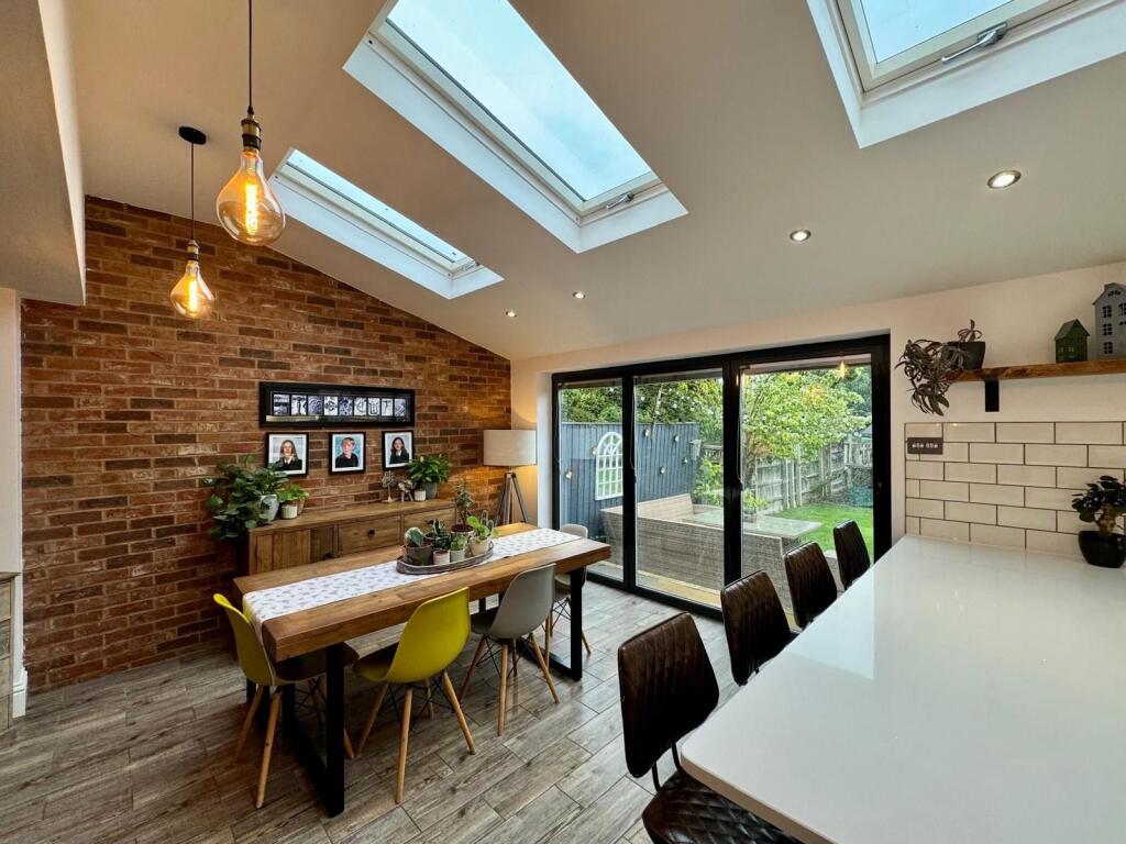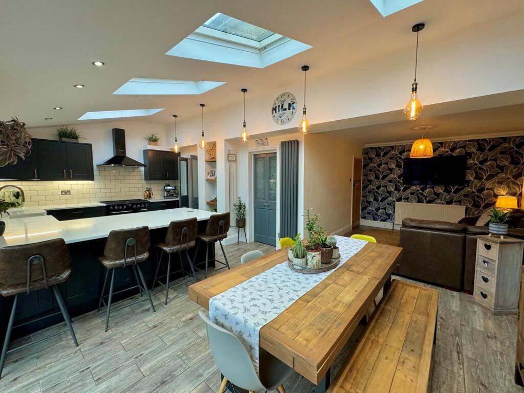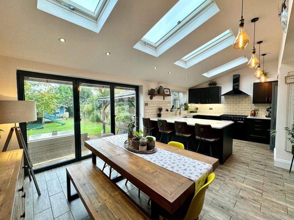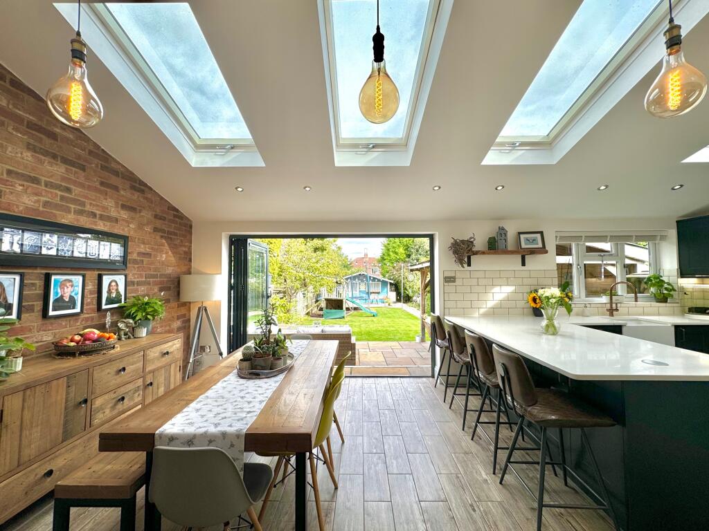 A beautifully presented, EXTENDED & deceptively spacious family sized home. Entrance Porch, entrance hall, cloakroom/W.C., living room, a large open plan and very sociable kitchen / breakfast / dining / family space + utility. 4 BEDROOMS + A SPACIOUS BATHROOM, LARGE REAR GARDEN, DRIVEWAY + GARAGE