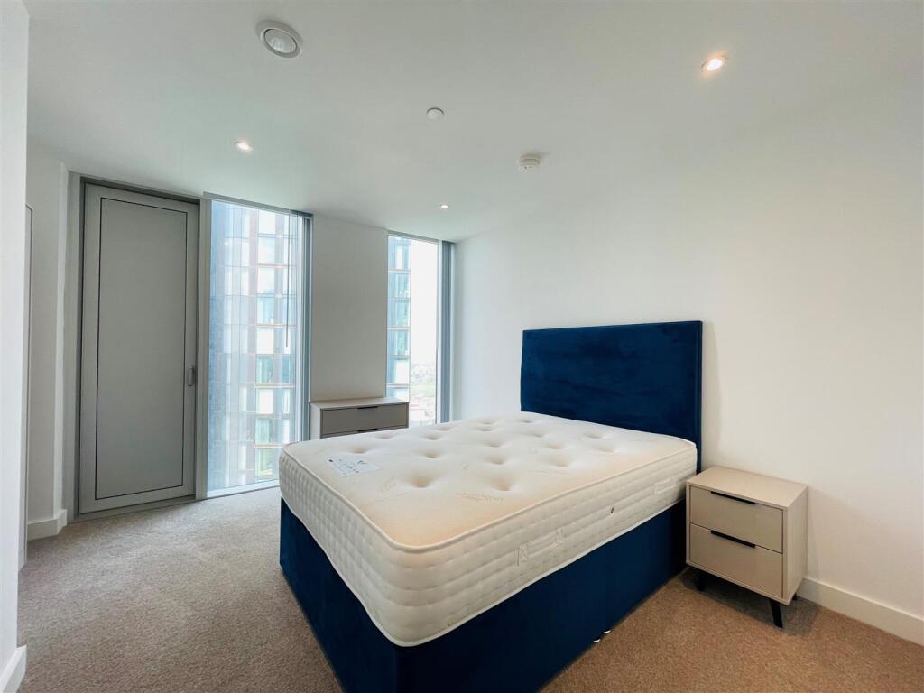 This spacious two double bedroom, two-bathroom apartment on the 32nd floor is furnished with high-specification integrated white goods and blinds included. The apartment is a large two-bedroom, two-bathroom apartment, with spectacular views across Manchester. The landlord has furnished the a...