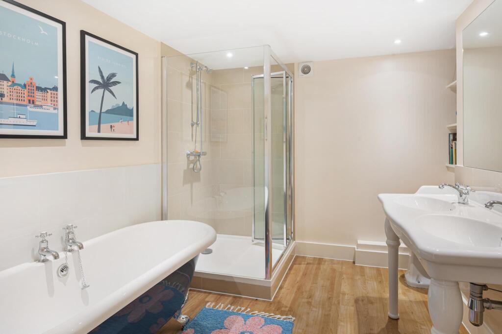 A split-level Maisonette with private garage, located in the heart of Fulham, SW6. A charming split-level maisonette, offering an impressive blend of space and functionality, complete with a private garage. Entering through a private entrance you are greeted by a delightful patio courtyard, whic...