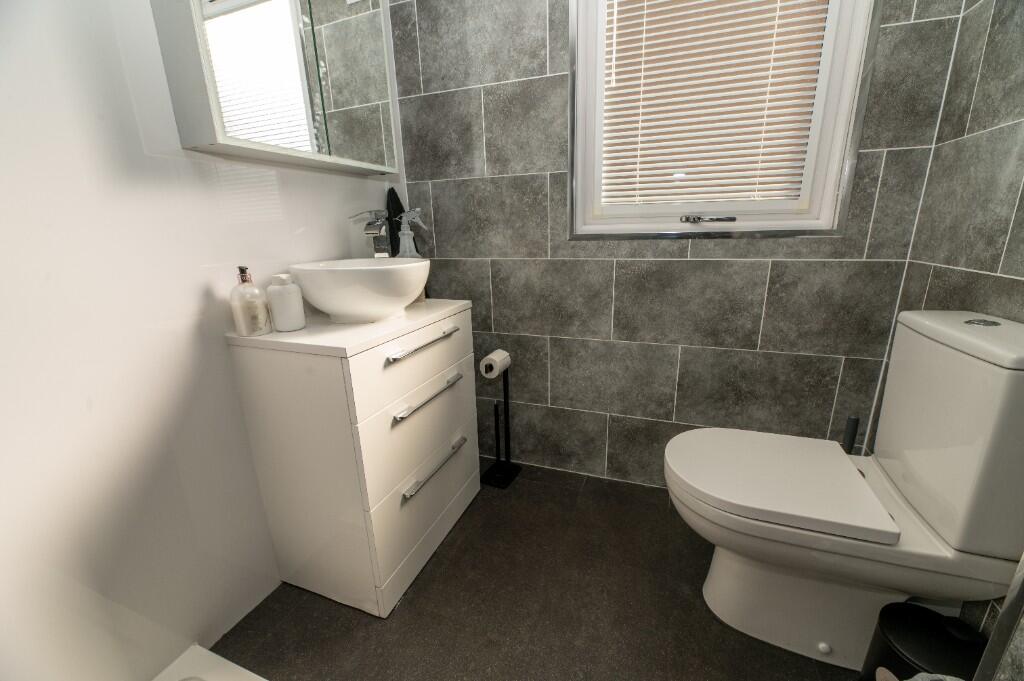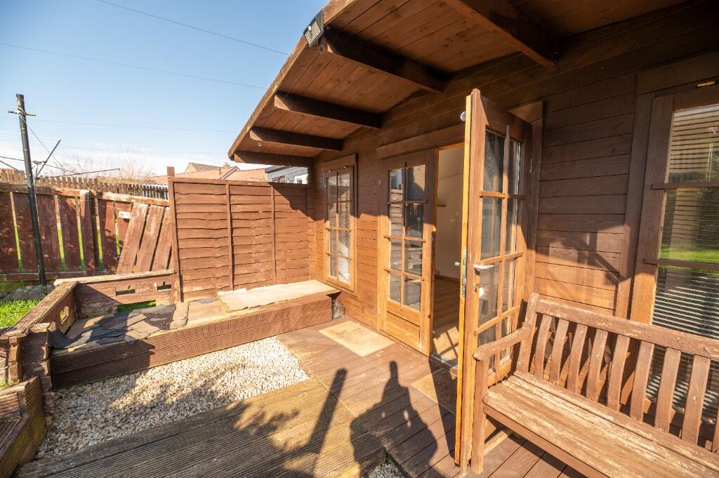 The property appears to be in good condition. The images show a recently modernised interior with new flooring, a contemporary kitchen and bathroom, and a good-sized garden with a decked area and garden shed. There is no evidence of significant repair or renovation needs.