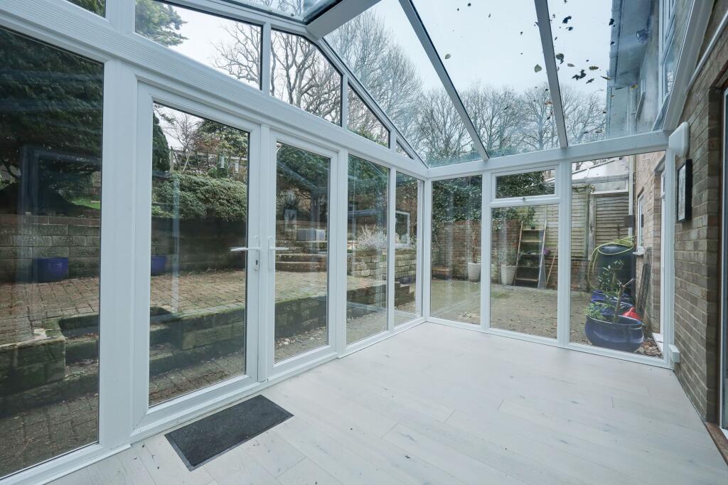This is a three-bedroom detached property in Hazel Grove, Burgess Hill. The house benefits from a modern interior, a conservatory, and a well-established garden. The location offers good access to local schools and transportation, with Burgess Hill train station nearby. The property appears to be in good condition, although the garden could use some landscaping. The price is reasonable considering the location and condition of the property.