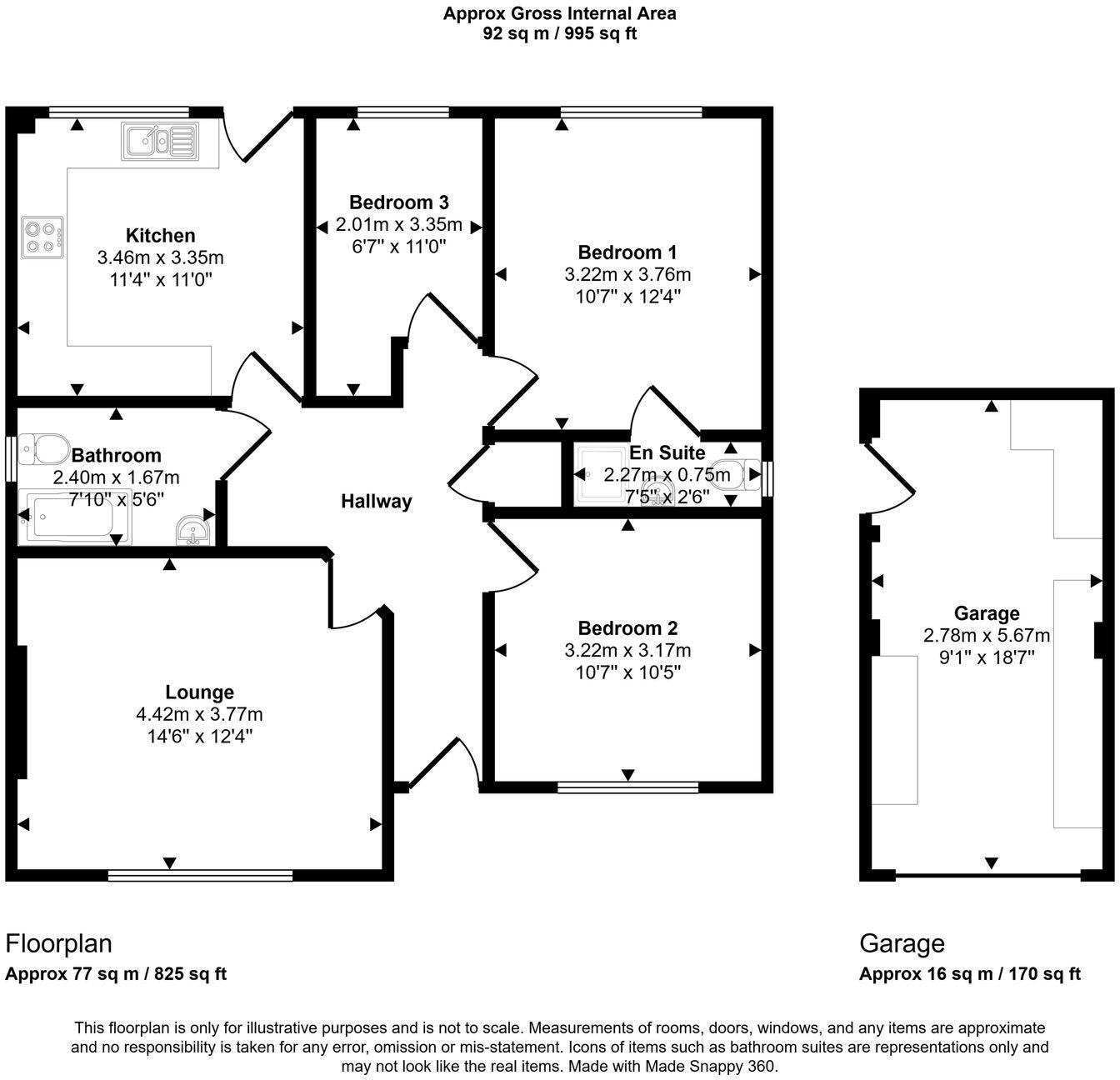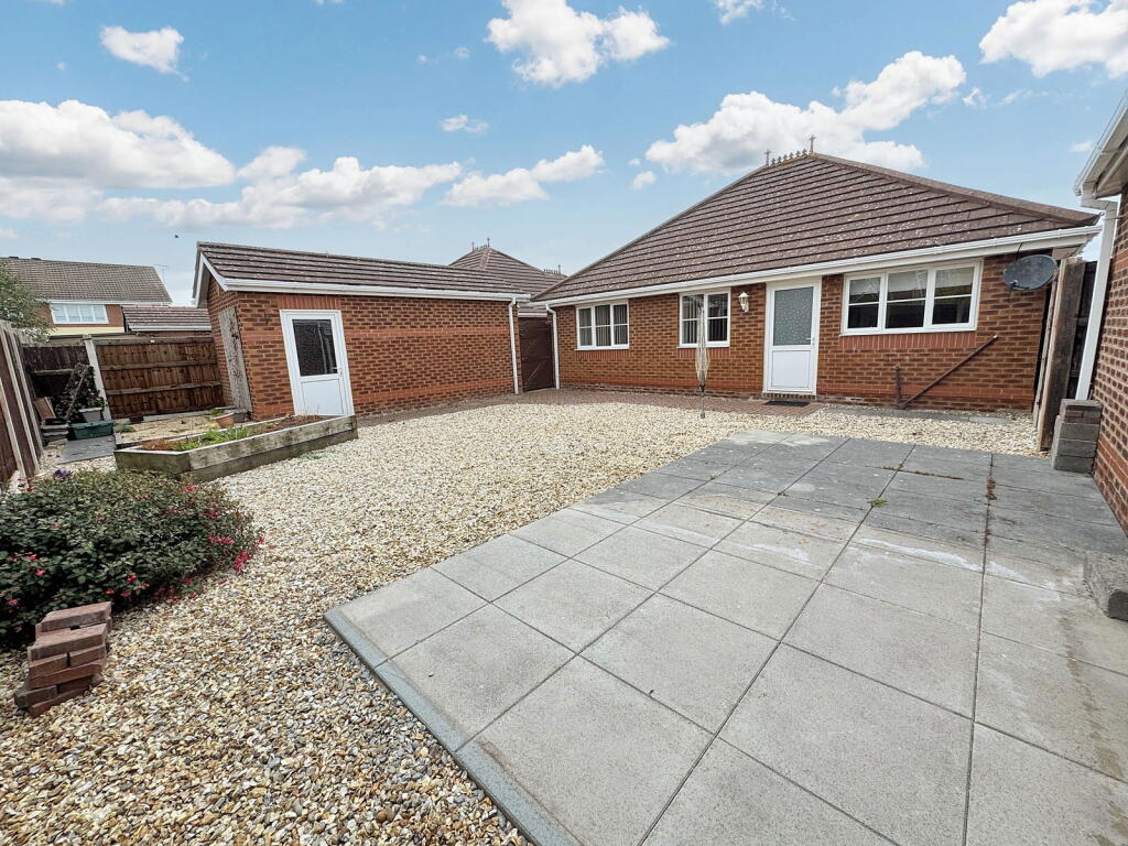 This detached bungalow is located on Meadow Court in Towyn, Abergele. The property features three bedrooms and one bathroom, with a total square footage of 828.82. The property has a driveway and what appears to be a detached garage, offering off-street parking. The front garden is mostly lawn. The back garden is gravelled with a paved area. The property is located within a reasonable distance of local schools and transportation links, with Rhyl and Abergele And Pensarn train stations both within 6km.