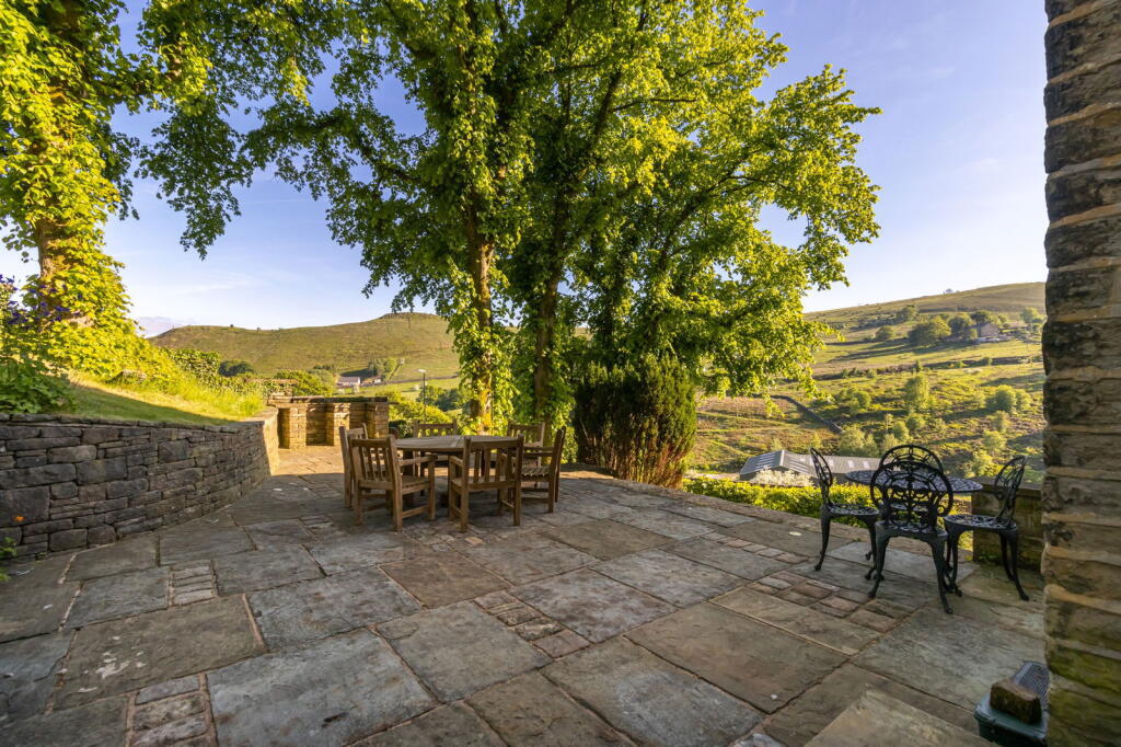 This property is located on Denshaw Road in Delph, Saddleworth. The area benefits from being close to Delph Primary School (0.75km), which has a good Ofsted rating. Other good-rated primary schools are within a reasonable distance, as are secondary schools. Greenfield and Mossley train stations are also relatively close by, offering convenient transport links. The photos show the property is well maintained and presented, with mature gardens offering a degree of privacy and seclusion. The grounds are extensive and include a patio area, lawn, and various landscaping features including a greenhouse and children’s play area. The property appears to be in excellent condition throughout, with modern fixtures and fittings in the kitchen and bathrooms. While the provided data doesn’t give the exact square footage, the list price of £850,000 is significantly higher than the average price for the area (£388,080). However, given the property’s apparent size, condition, and generous land, the price may be justifiable compared to similar properties in the area, such as the £650,000 property also located on Denshaw Road. The property’s location and features suggest it would appeal to families seeking a substantial home in a desirable village setting with good local amenities and transport links.