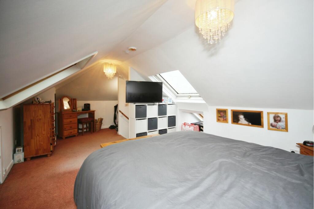 This five-bedroom semi-detached house in Aggborough Crescent, Kidderminster, is presented as a family home in a sought-after location. The property benefits from a generous rear garden, off-street parking, and a flexible living layout. The interior shows a mix of updated and original features. The kitchen appears recently modernized with contemporary white units and dark flooring. The bathrooms are also well-presented, with one featuring grey subway tiles and a modern shower/bath combination, and the second having a smaller shower enclosure. The bedrooms are of varying sizes, one of which is in the loft conversion and benefits from a skylight. The house also includes a sizable garden with a shed. While some rooms show personal touches and decor that may not appeal to all buyers, the overall condition is good. The property’s location in Aggborough & Spennells is advantageous, offering proximity to schools and Kidderminster town centre. The lack of precise plot size data and limited comparable sales data in the immediate vicinity makes a complete valuation challenging, but the list price appears to be within a reasonable range for the area.