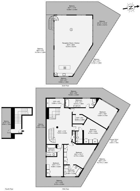 A breathtaking and unique, interior-designed duplex penthouse apartment (3302 sq ft) newly finished to an exquisite standard throughout, with extensive wrap-around private roof terraces with 360 degree views over London. The apartment comprises four double bedrooms, four bathrooms, a study and an...