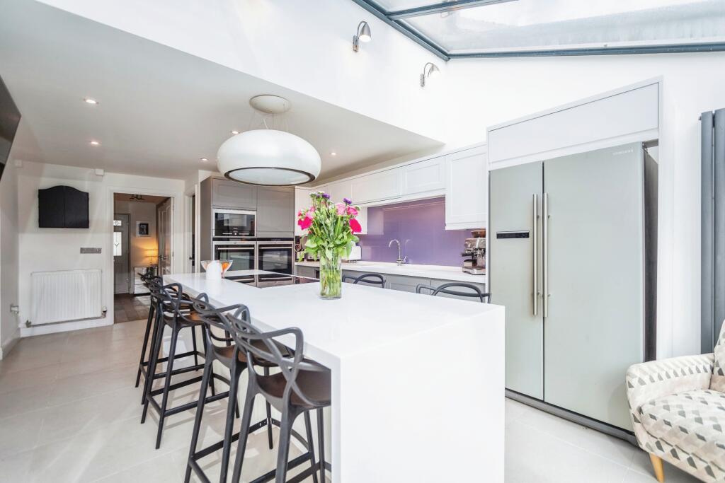 This four-bedroom, two-bathroom detached house in Wigmore, Rainham, Kent, presents as a well-maintained family home. The property features a modern, renovated interior. The images showcase updated kitchens and bathrooms, indicating a recent refurbishment or extensive upgrades. The house benefits from a good sized rear garden with a patio and lawn, perfect for entertaining and family use.