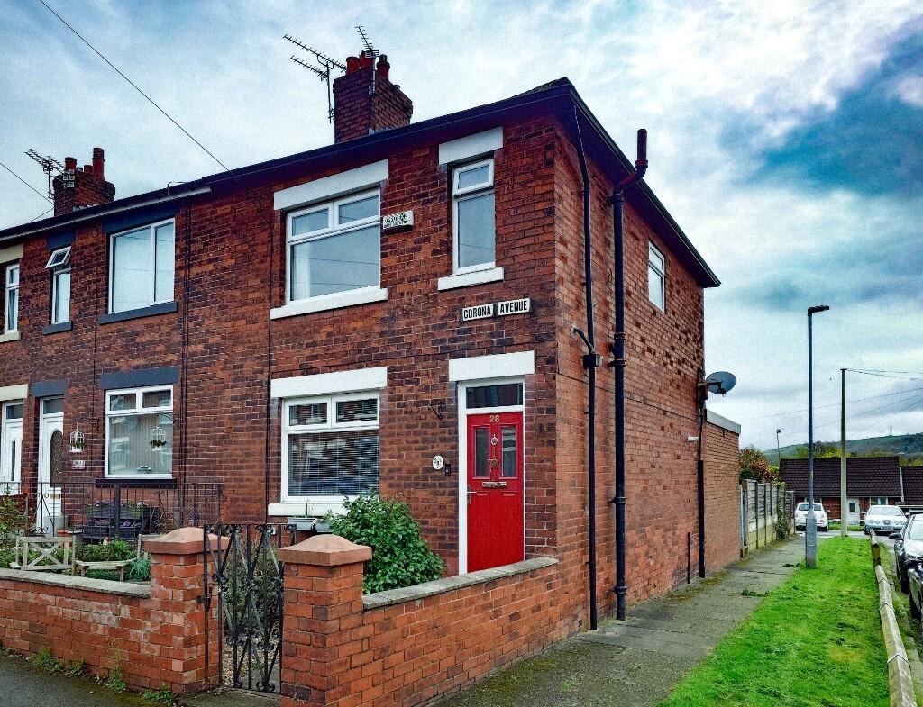Occupying an end corner position, with gated off road parking to the rear, this marvellous three-bed end garden terraced property sits within easy reach of Hyde Park, Hyde Centre, the motorway and Newton for Hyde railway station.