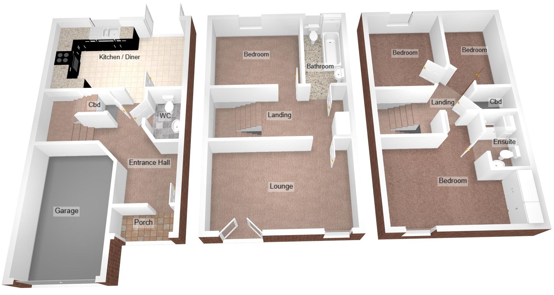 Modern four bedroom mid terraced townhouse comprising entrance hall, downstairs w.c. kitchen/diner, lounge, EN SUITE to master bedroom, family bathroom, single GARAGE with driveway parking to the front and enclosed rear garden. Good sized family home. Viewing highly recommended!