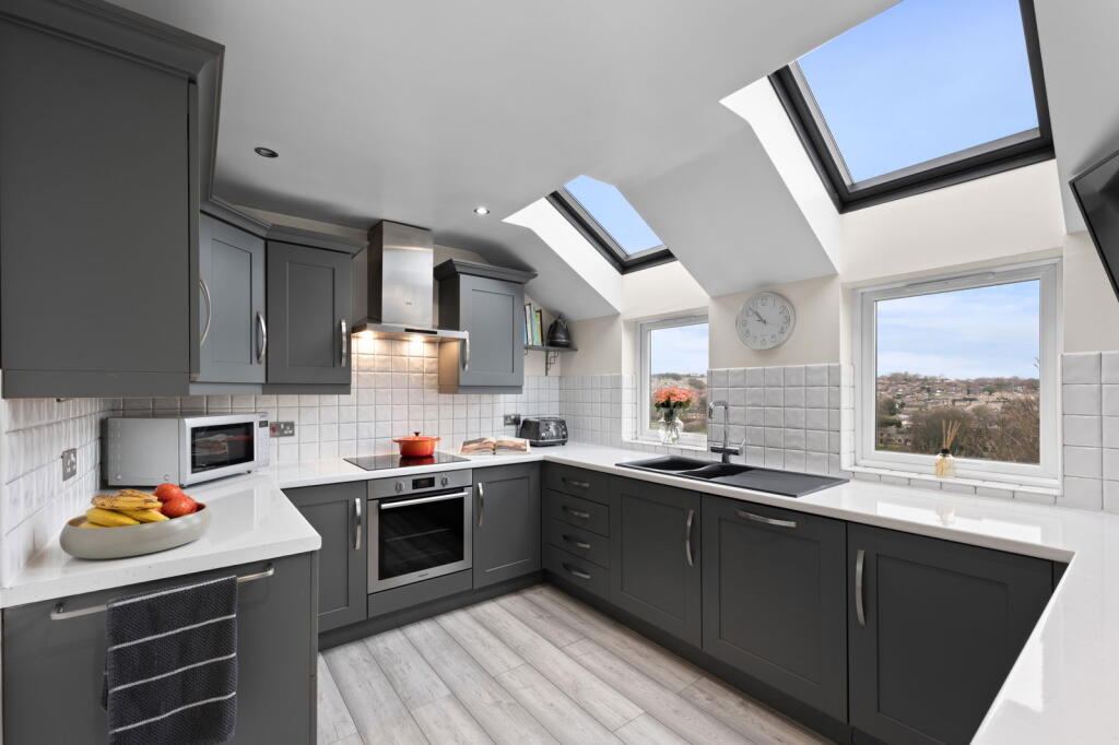This five-bedroom, two-bathroom property in Brighouse, West Yorkshire, presents a compelling proposition for buyers seeking a modern and well-maintained family home. The property boasts a contemporary interior with a recently updated kitchen and bathrooms, as evidenced by the high-quality photographs. The open-plan living area is spacious and benefits from abundant natural light, enhanced by large windows offering views of the surrounding area. The inclusion of five bedrooms provides ample accommodation for a family or those requiring multiple living spaces. The property’s location in Long Ridge places it within reasonable proximity to local schools, several of which are highly rated according to Ofsted reports. The nearby train station in Brighouse offers convenient access to public transport links. While the property features a balcony and small decked area, the overall plot size is limited, which might be a drawback for buyers seeking a large garden. The list price of £450,000 appears reasonable given the property’s size, condition, and location, although a more precise valuation would require a detailed comparison with comparable properties with complete square footage information. Overall, this property represents a solid investment opportunity for those seeking a modern, well-located family home in Brighouse.